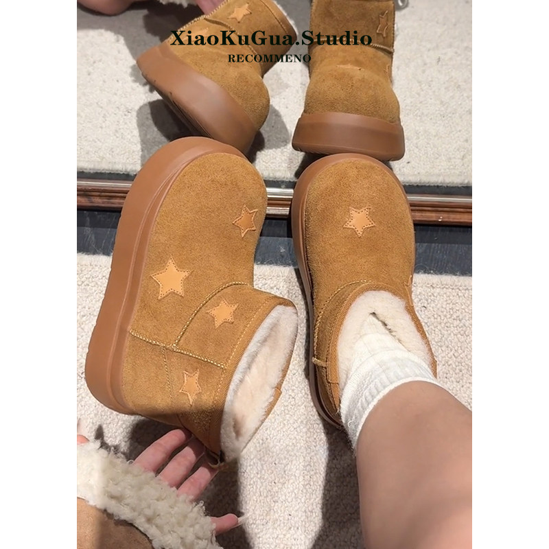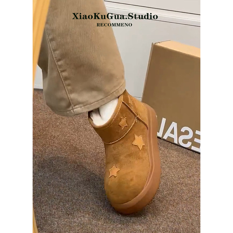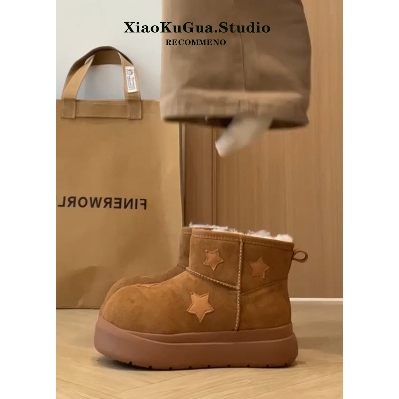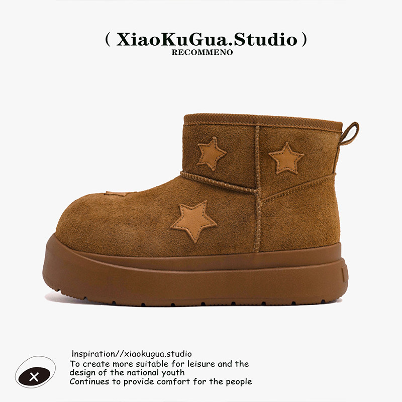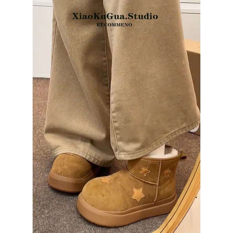 星星雪地靴女款2025新款冬季加绒大头面包鞋保暖短靴厚底雪地棉鞋