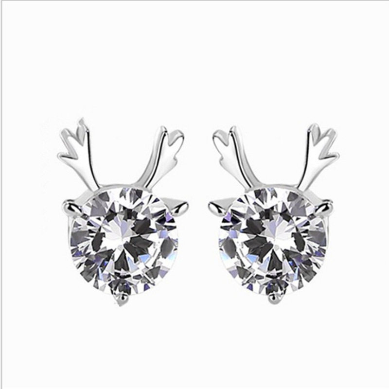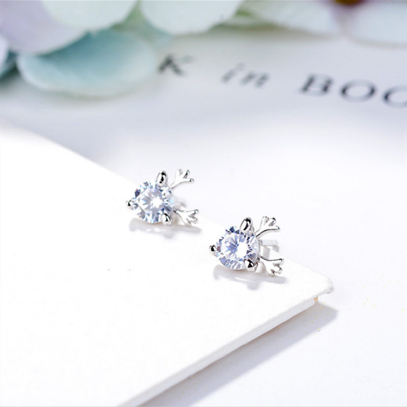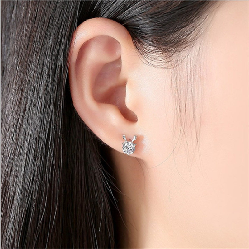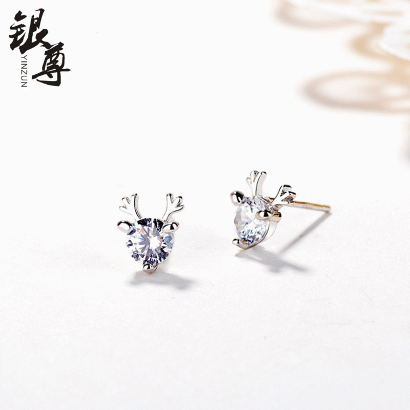 925纯银鹿角耳钉 甜美森系一鹿有你气质简约清新麋鹿耳钉圣诞礼物