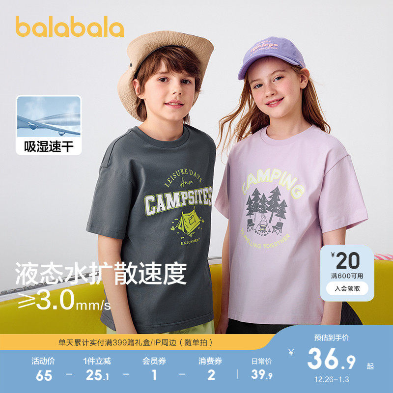 巴拉巴拉童装男童短袖t恤女童上衣宝宝2025新款夏装儿童速干衣服