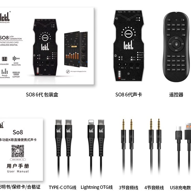 正品ickb so8六代手机直播声卡数字OTG边充电快手抖音主播套装