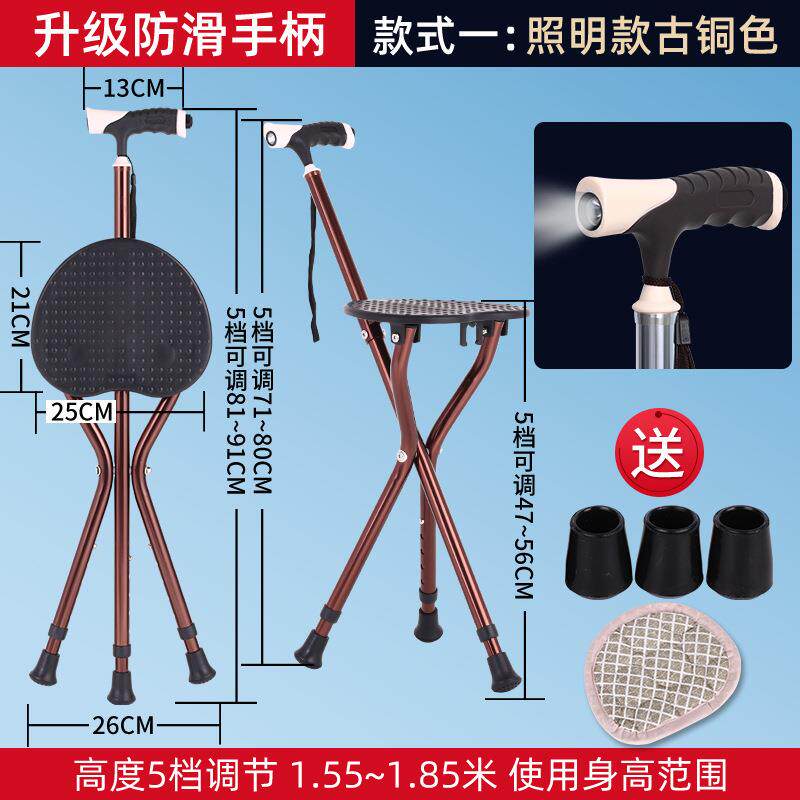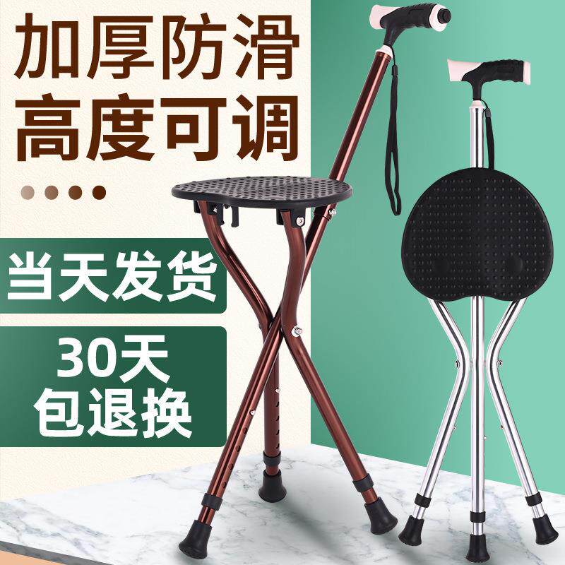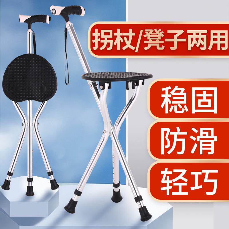 跨境老人拐杖凳老年人登山杖手杖椅智能带灯折叠四角三角无座