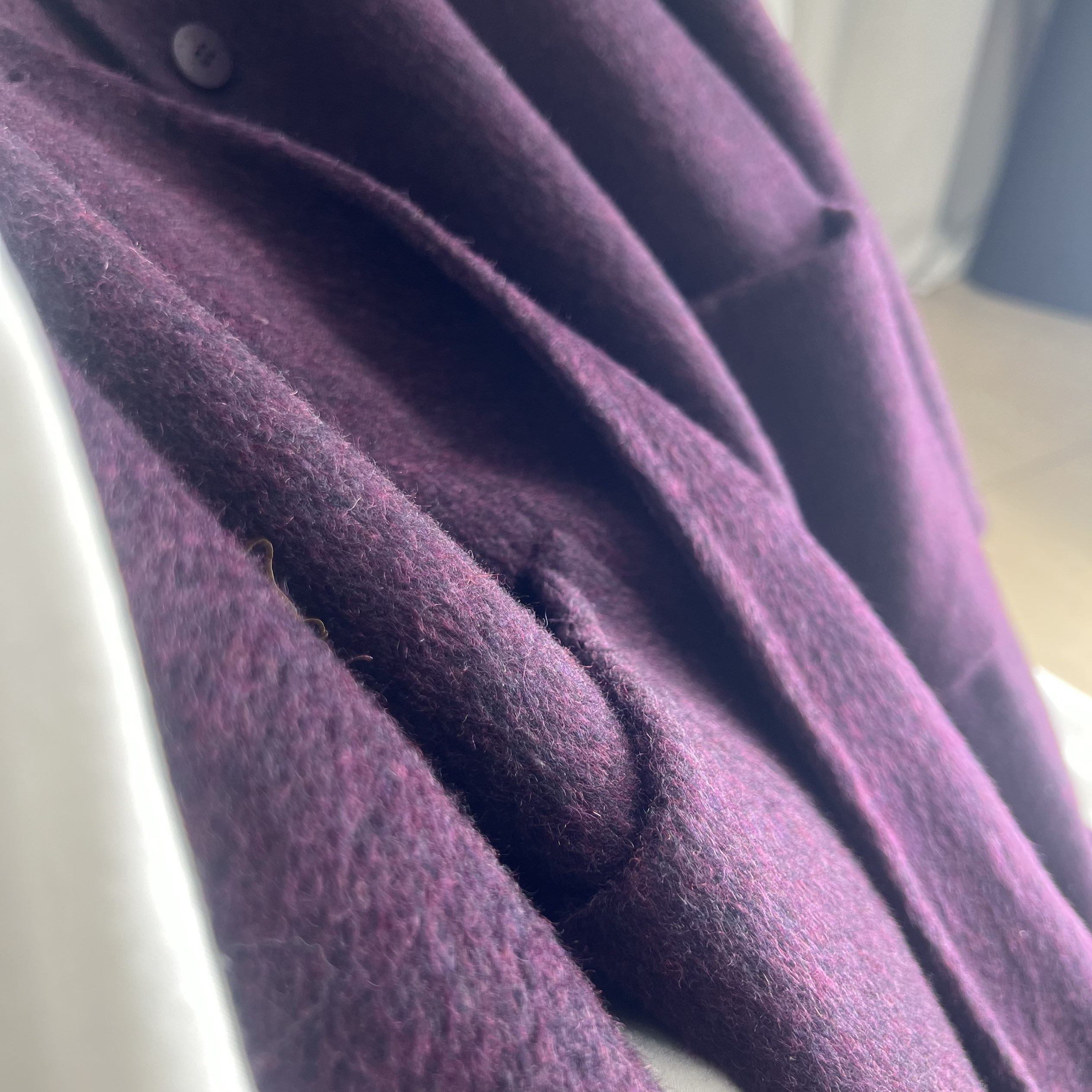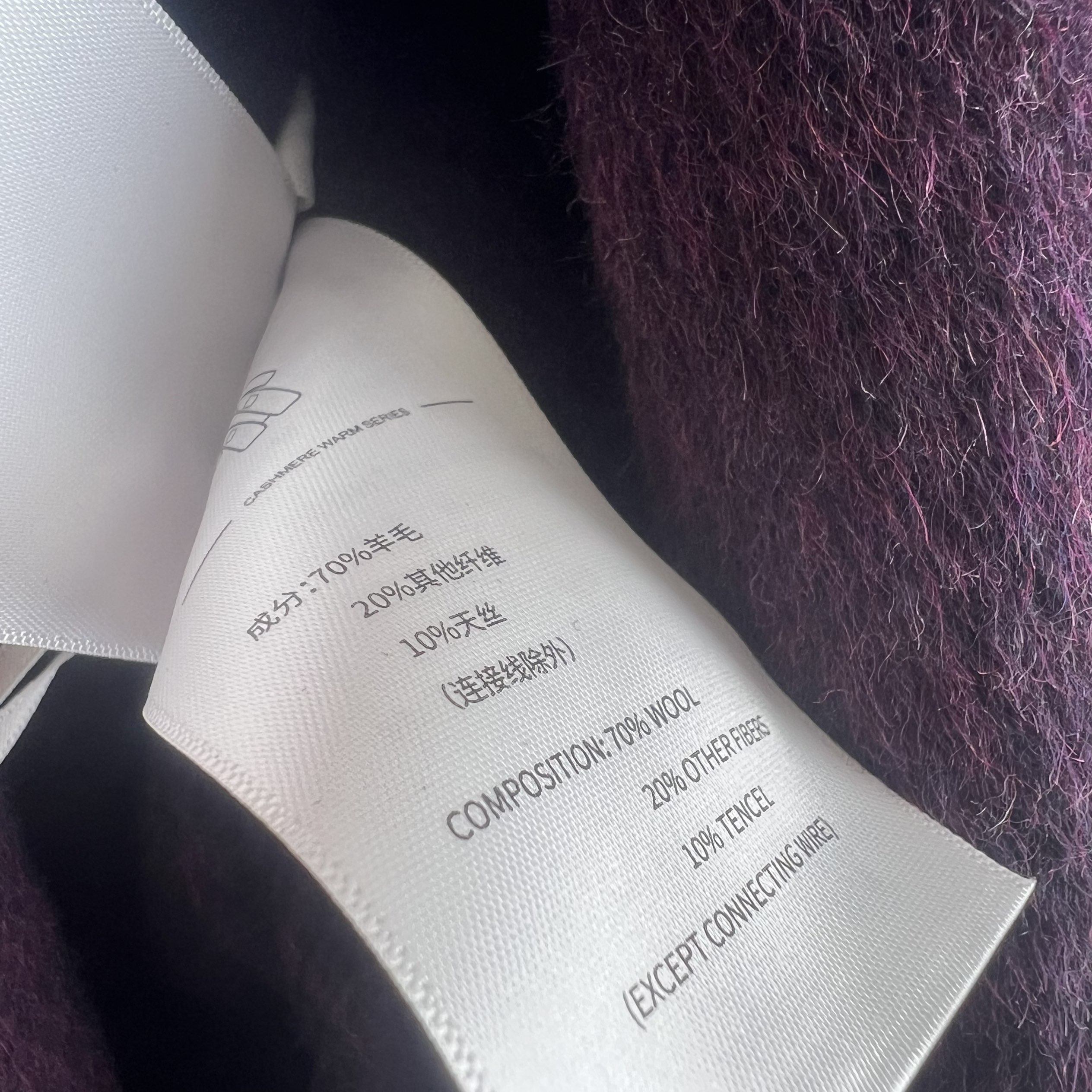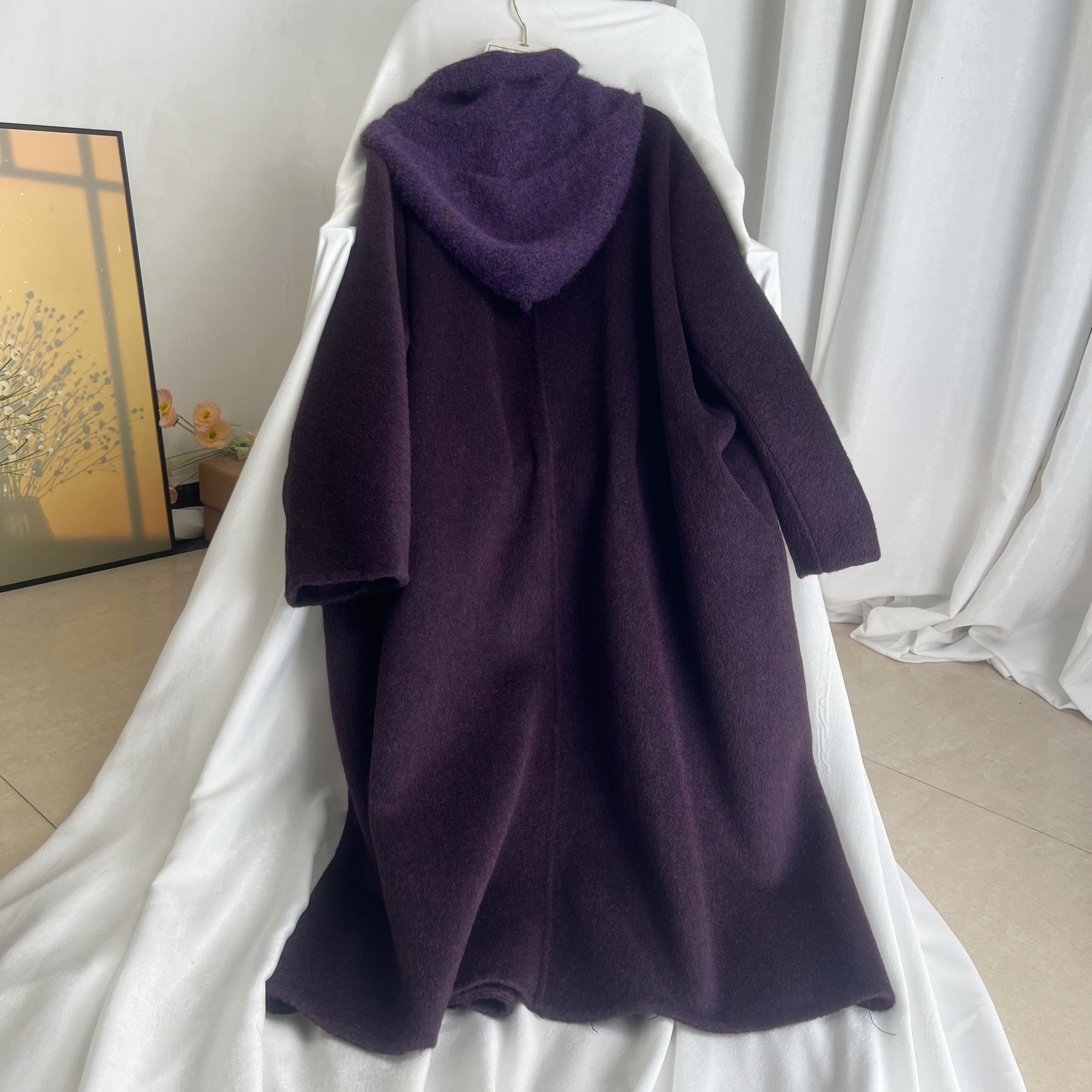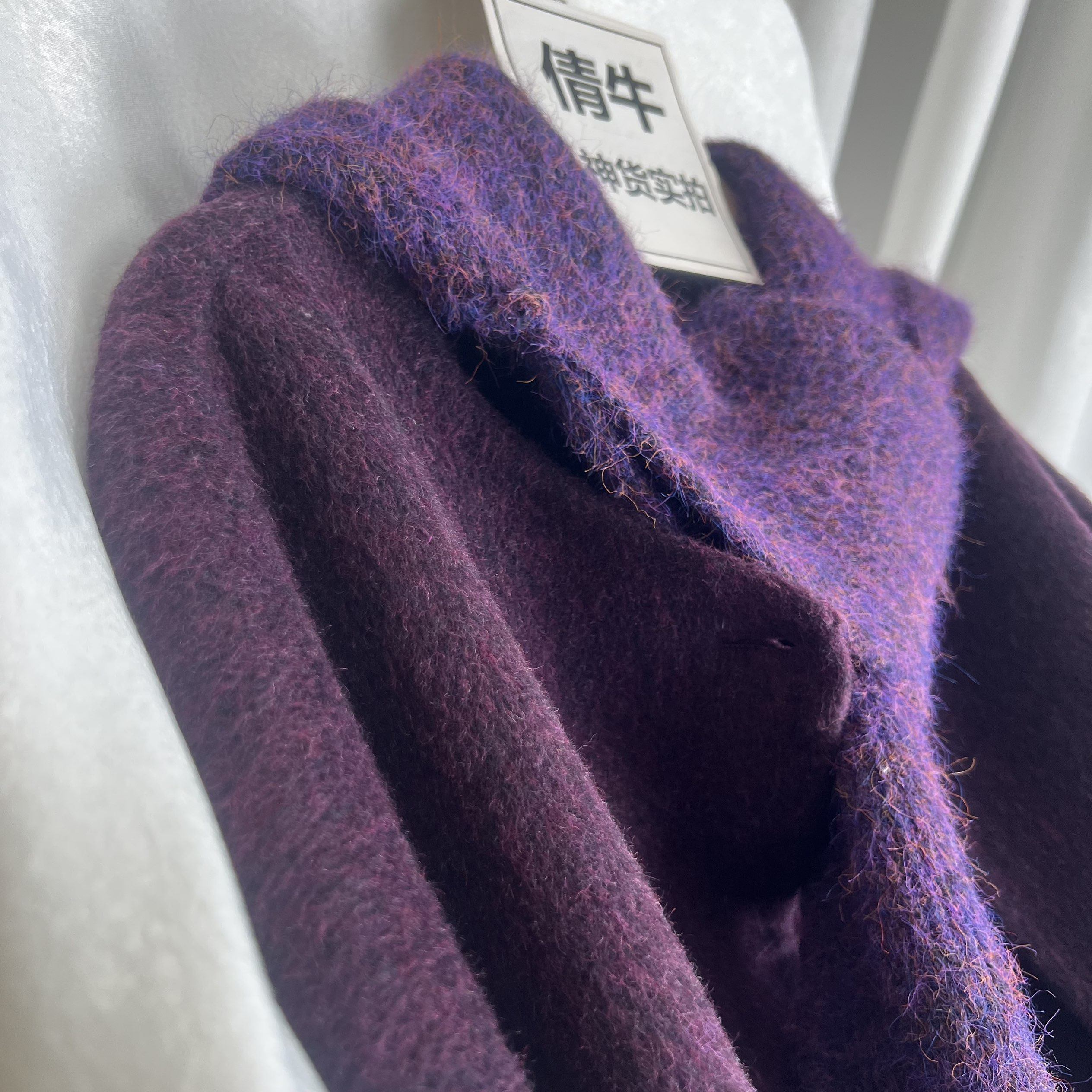 高端神货】天丝羊毛高级感紫色加长款宽松双面手工大衣外套配围巾