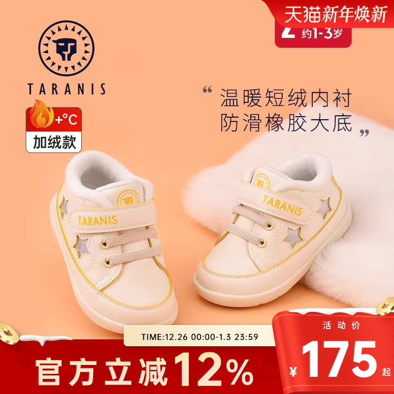 泰兰尼斯宝宝学步鞋冬季加绒加厚保暖婴儿二棉鞋机能鞋白鞋男童