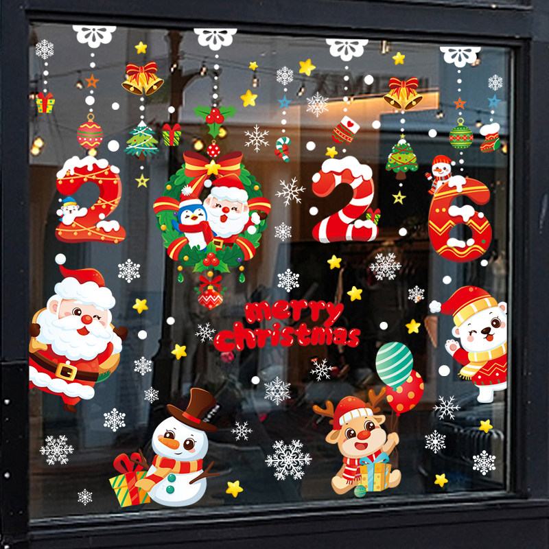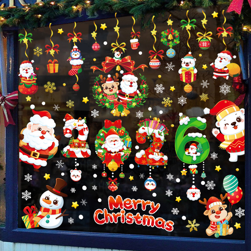 圣诞节装饰品静电玻璃门贴纸2026新款店铺场景布置橱窗贴窗户窗花