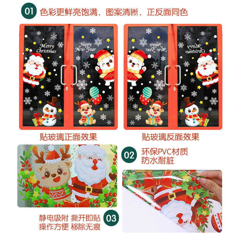 圣诞节装饰品静电贴圣诞老人树窗户橱窗贴玻璃门贴纸场景布置挂件