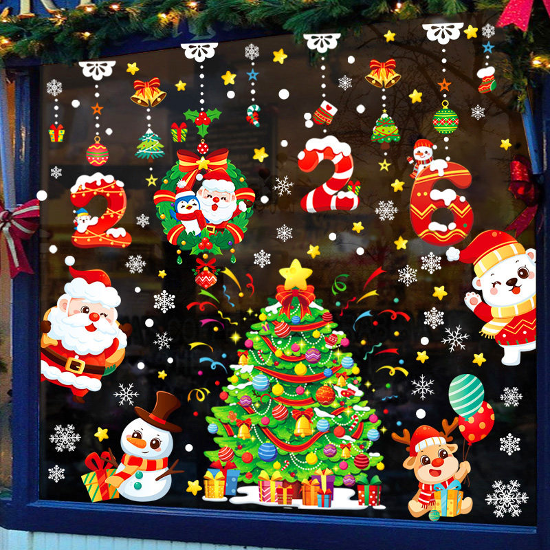圣诞节装饰品2026静电橱窗贴画玻璃门贴纸场景布置圣诞老人树氛围