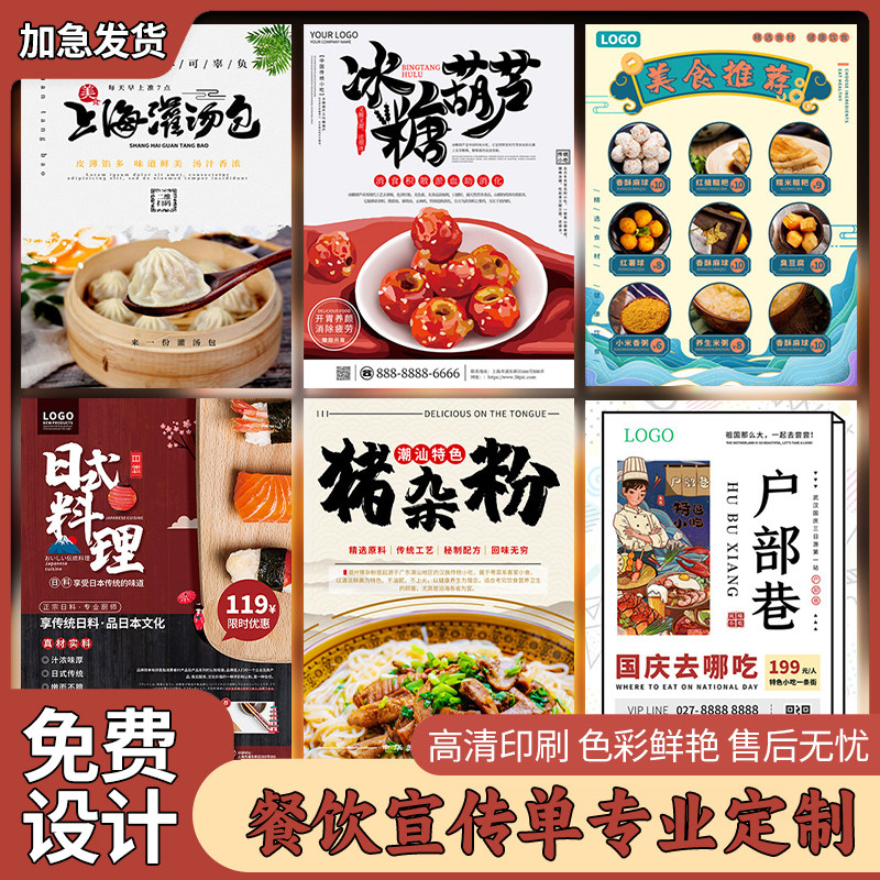 餐饮宣传单定制外卖广告开业菜单彩页印制打印刷火锅美食海报设计