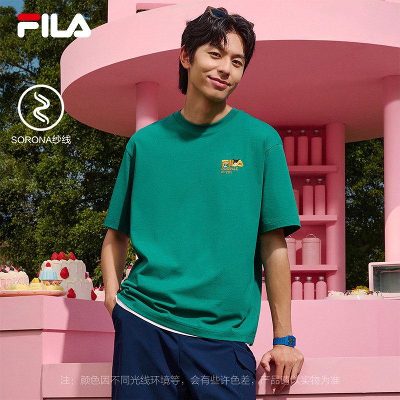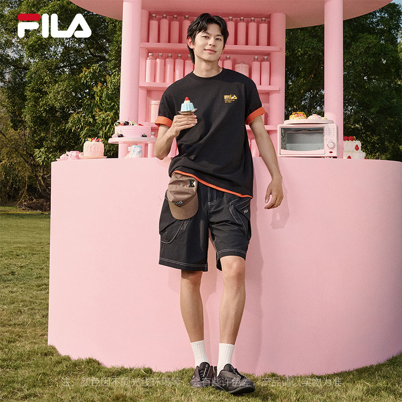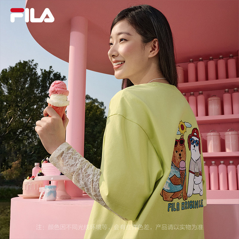 FILA斐乐情侣针织短袖衫女2026夏新款男休闲宽松狗狗猫咪刺绣T恤