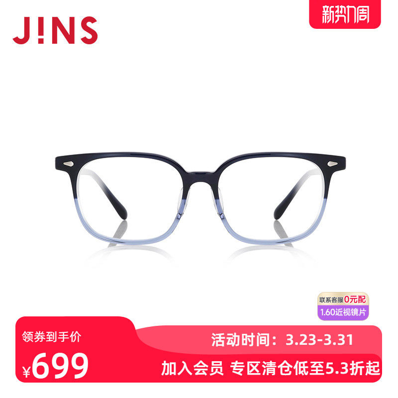 JINS睛姿含镜片舒适轻盈经典板材近视镜可加配防蓝光片UCF24A023