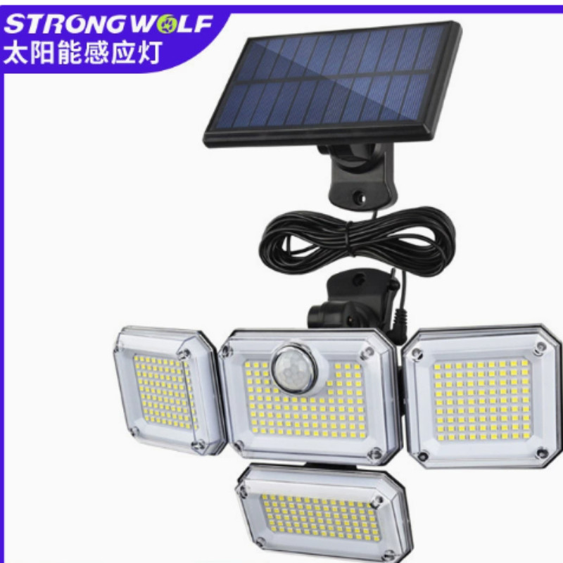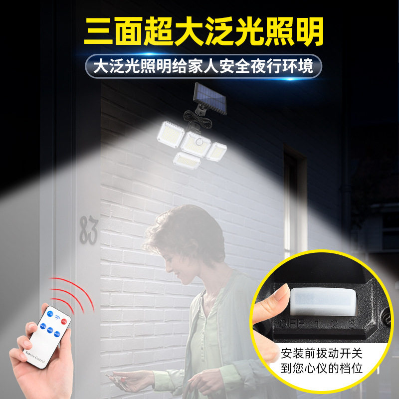公牛新款太阳能壁灯四头旋转户外防水路灯人体感应道路照明庭院灯