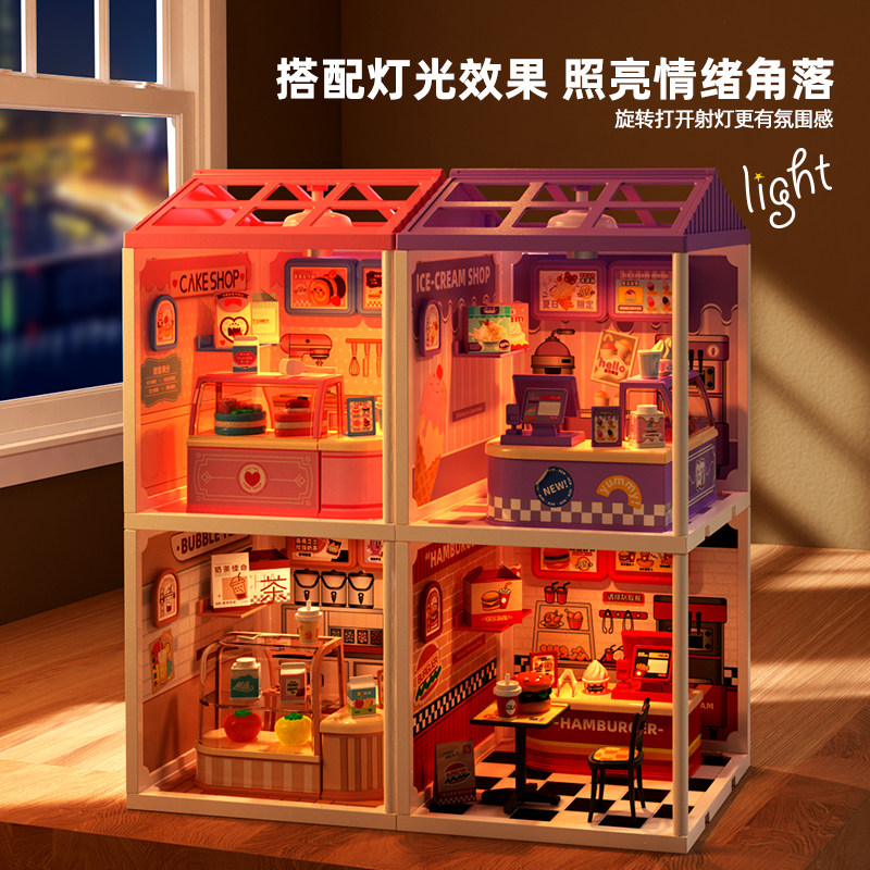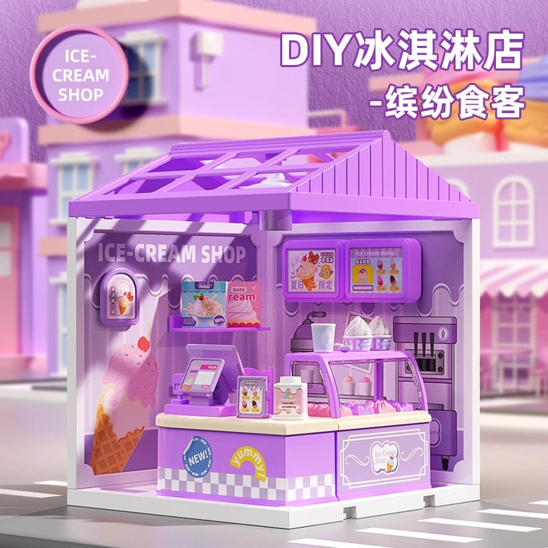 儿童小街景冰淇淋积木3到6岁宝宝益智拼装摆件男女孩子过家家玩具