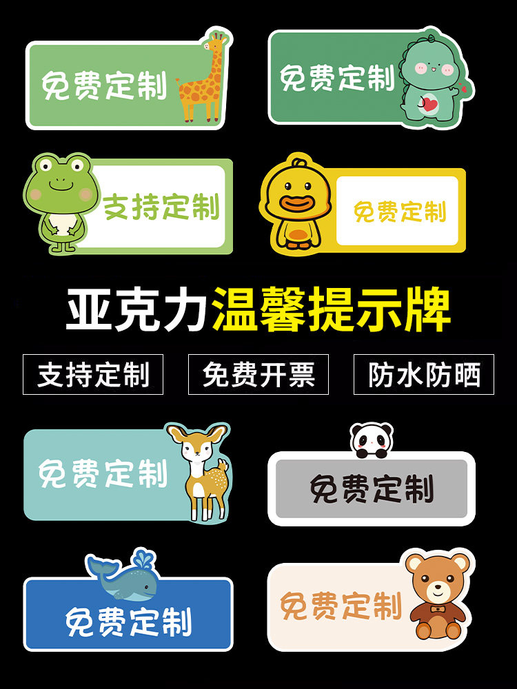 温馨提示牌定制卡通亚克力标识牌温馨提示贴广告牌展示牌定做创意网红风提示牌墙贴可爱门牌订制友情指示牌子