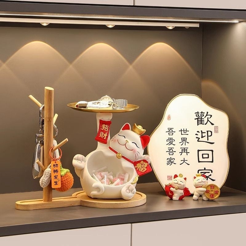 家居招财猫钥匙收纳摆件客厅玄关入户电视柜装饰乔迁新居欢迎回家