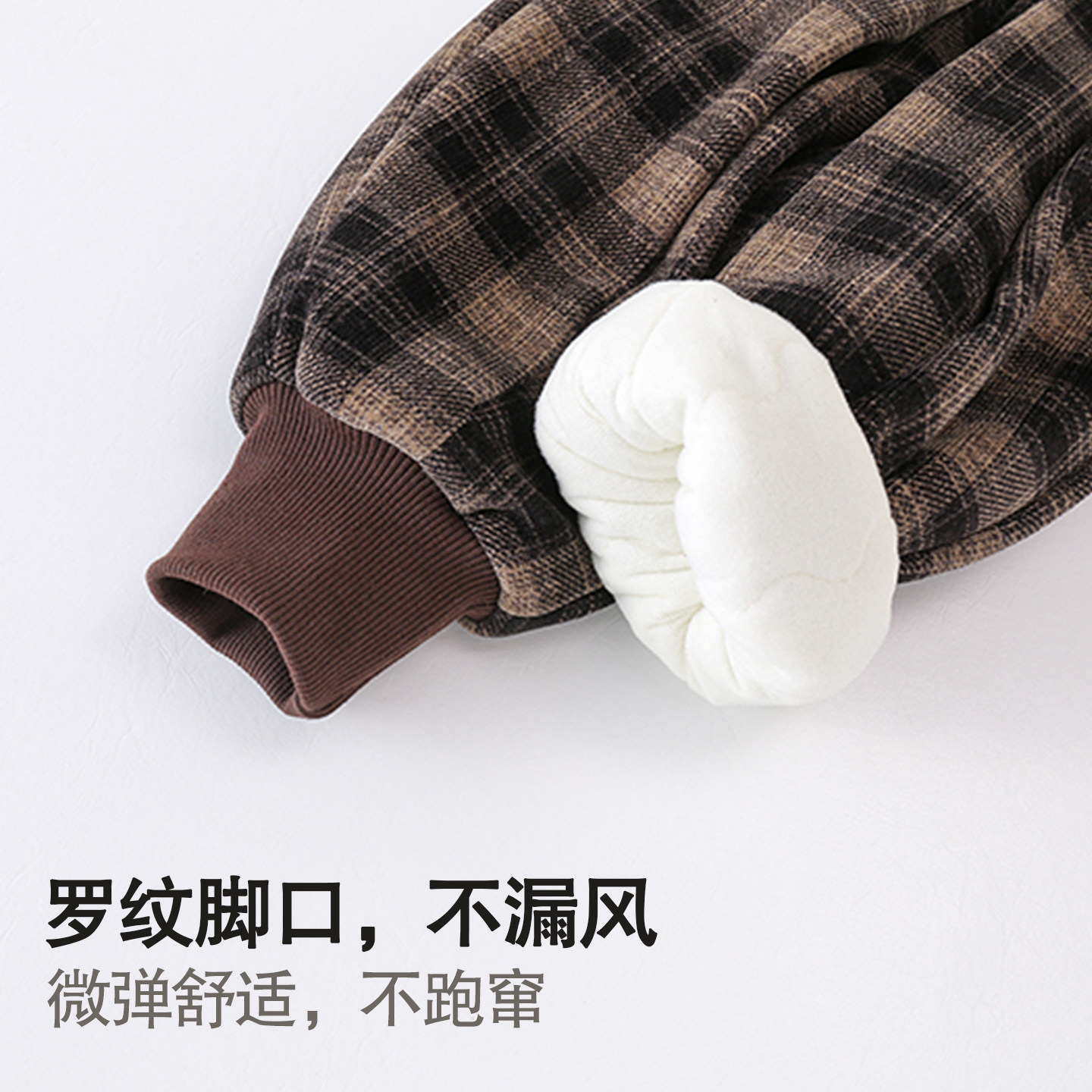 婧麒儿童加绒裤子秋冬加厚冬新款棉裤2025新款宝宝保暖运动裤冬季