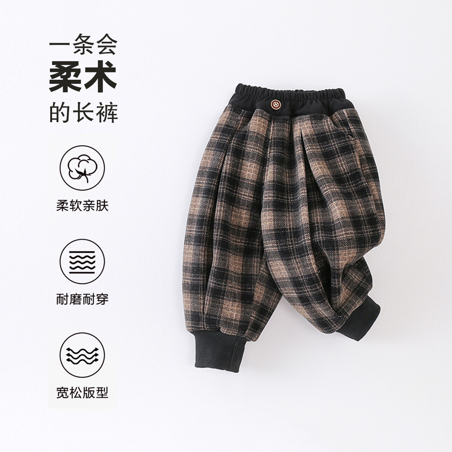 【李佳琦直播间】齐齐熊男童新年打底毛衣裤子冬款宝宝格子裤儿童