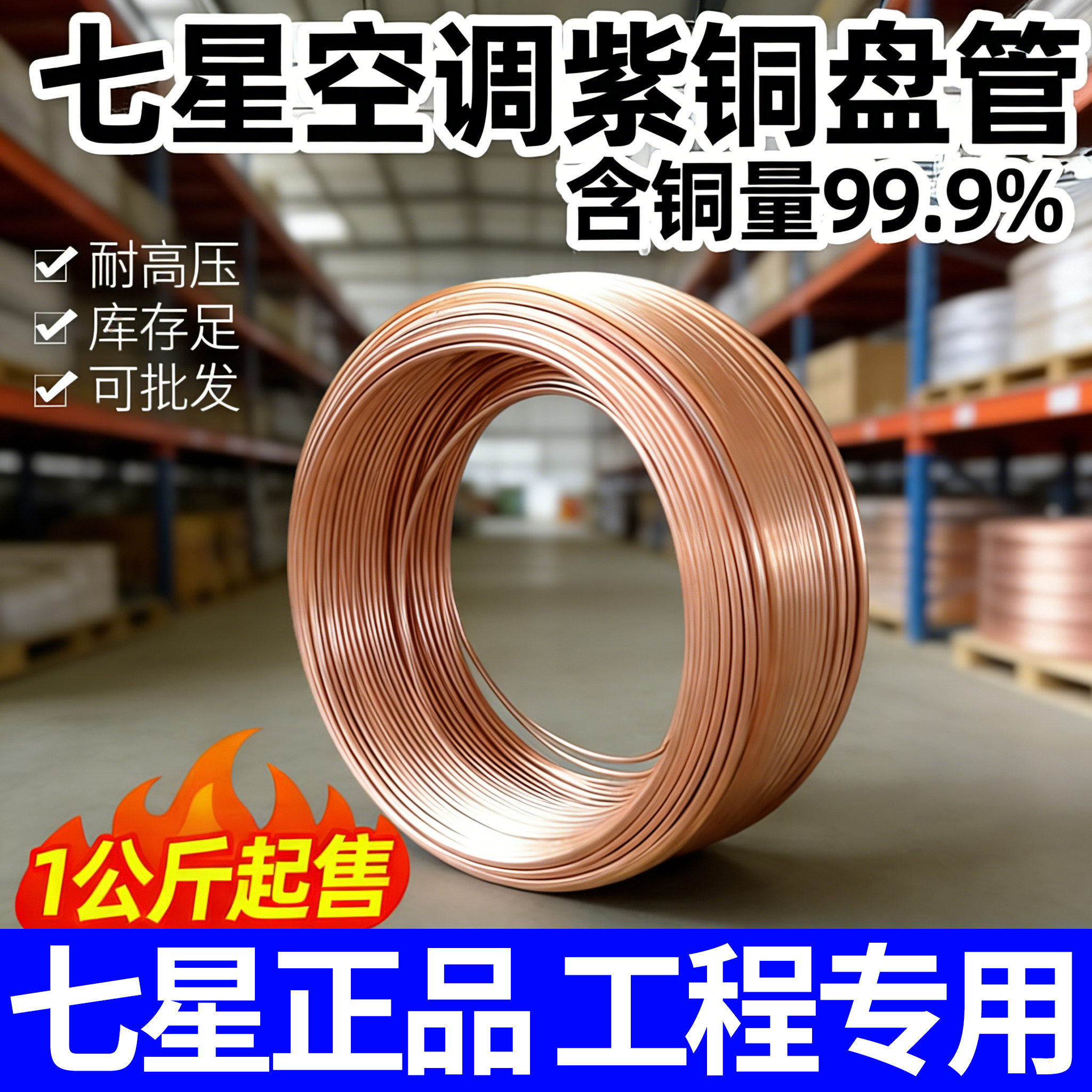 空调铜管加厚纯铜空心连接管410紫铜管空调盘管七星9毫米铜管10mm