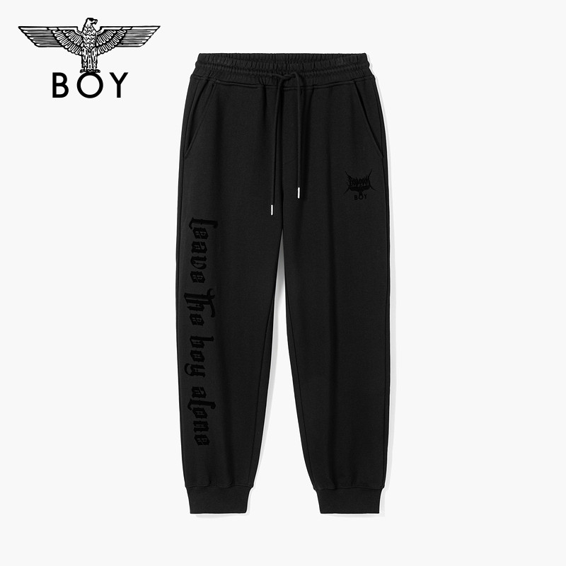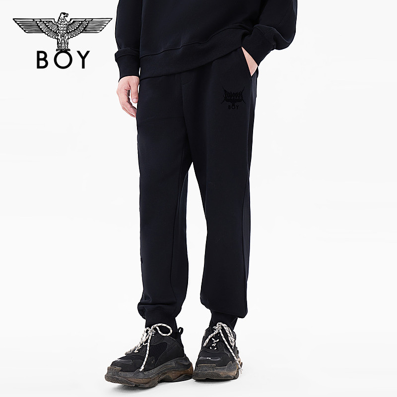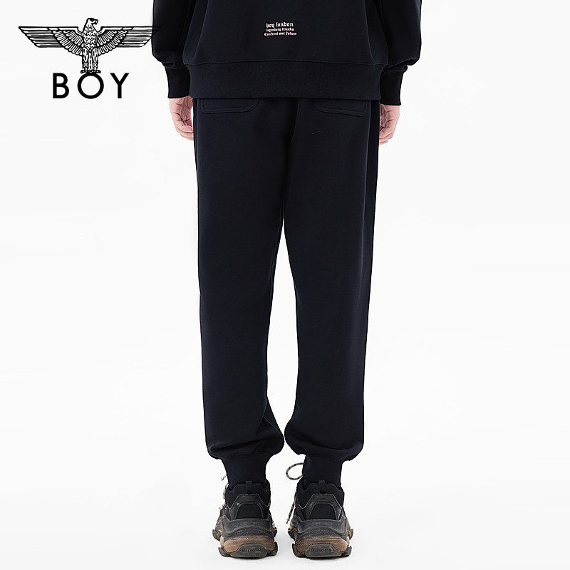 BOYLONDON冬男女同款长裤简约休闲宽松黑色束脚裤N15090