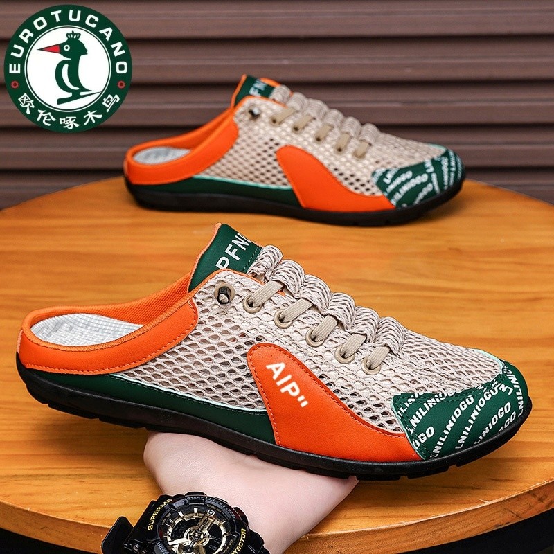 半拖鞋男夏季透气网面运动阿甘板鞋男士一脚蹬无后跟沙滩包头凉鞋