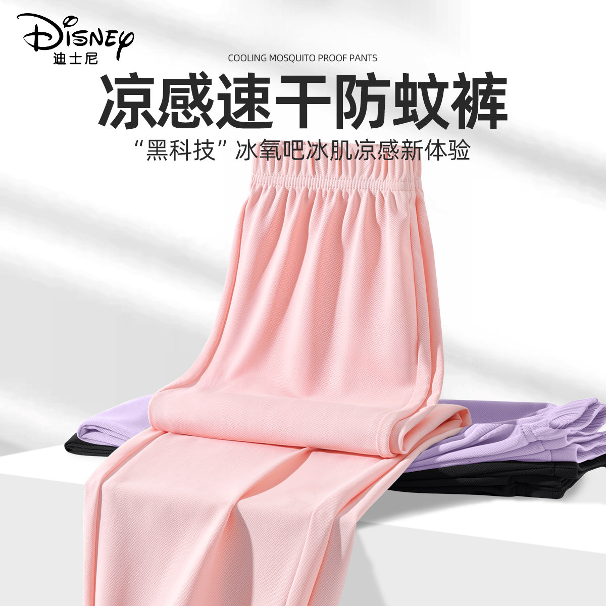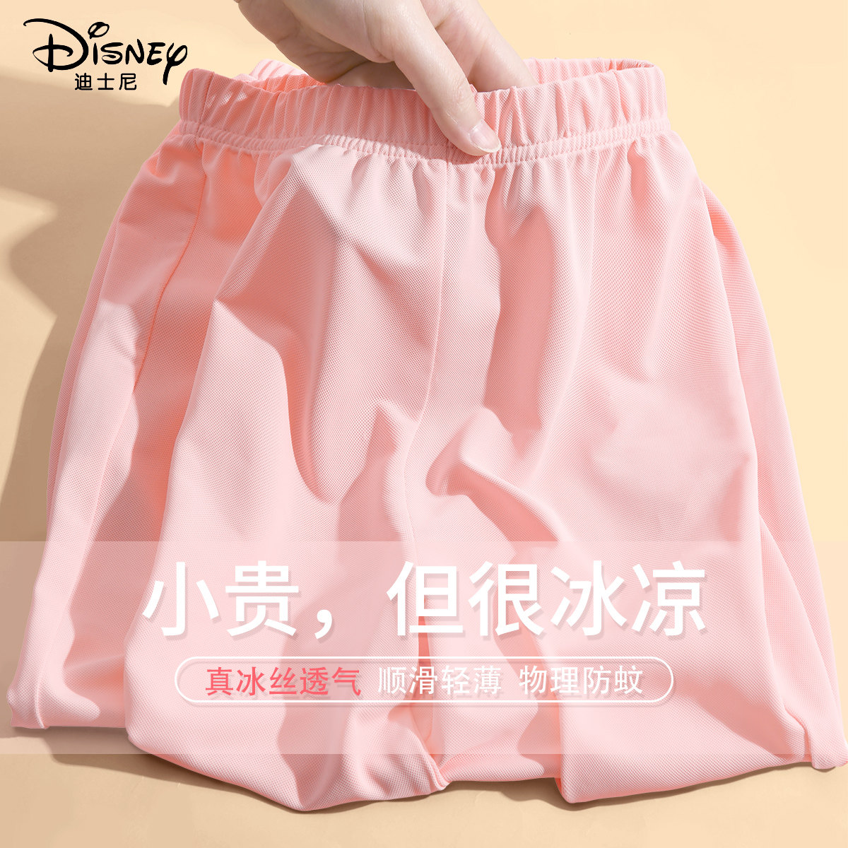 迪士尼女童夏季裤子2025新款薄款冰丝纯色女孩防蚊裤儿童夏装长裤