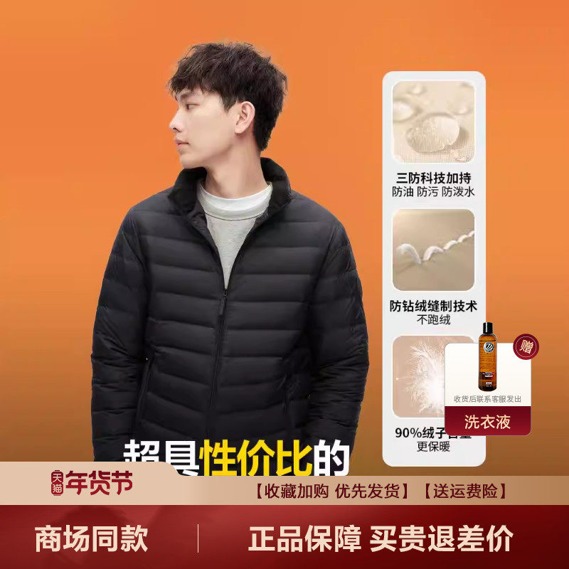 波司登轻薄羽绒服男士新品短款2025秋冬季品牌立领羽绒服鹅绒外套