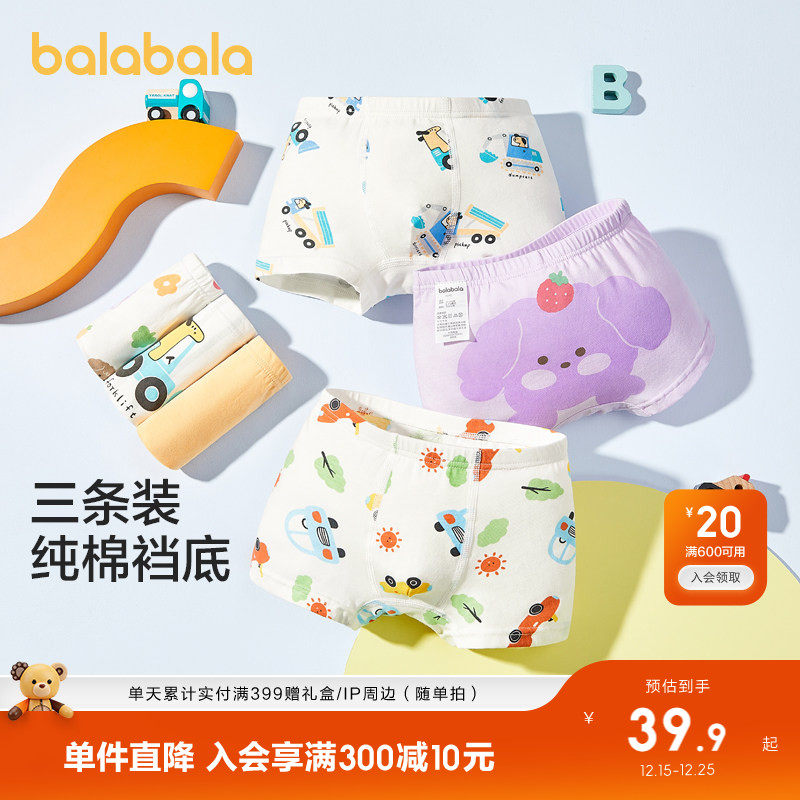 【balaOne】巴拉巴拉儿童内裤棉男童不夹pp抗菌裆四角短裤三条装
