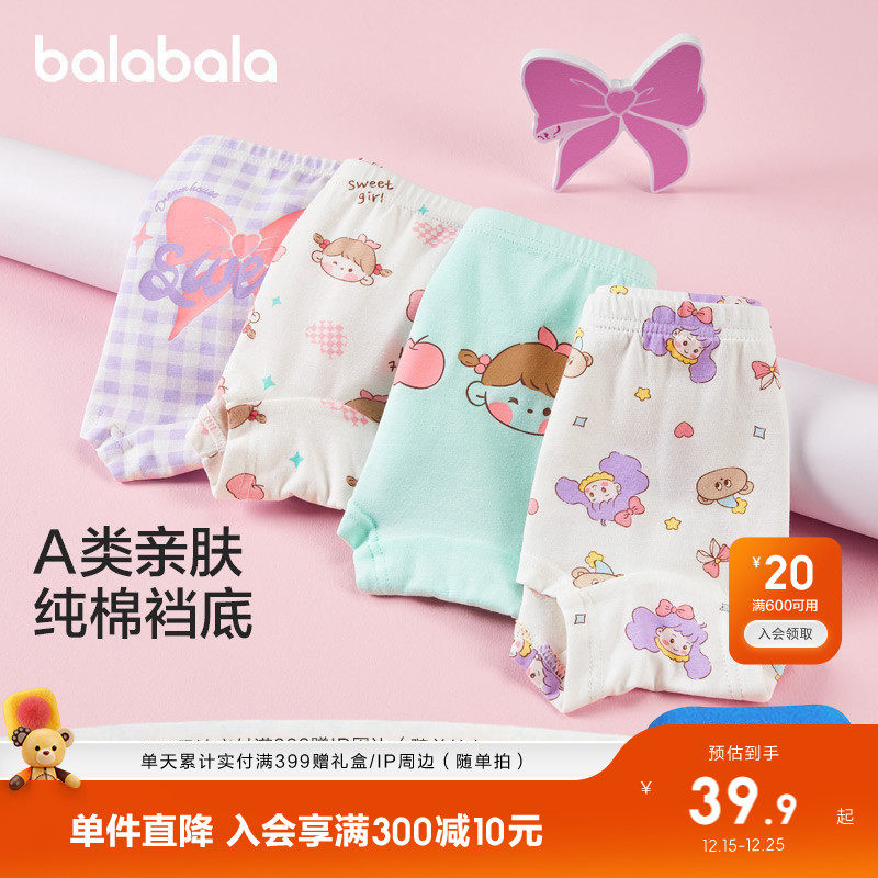 迷你巴拉巴拉儿童内裤男女宝宝抑菌不夹pp四角短裤5条装棉平角裤