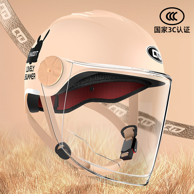 3c认证电动车头盔男女士夏季摩托车四季通用安全帽半盔新国标镜片