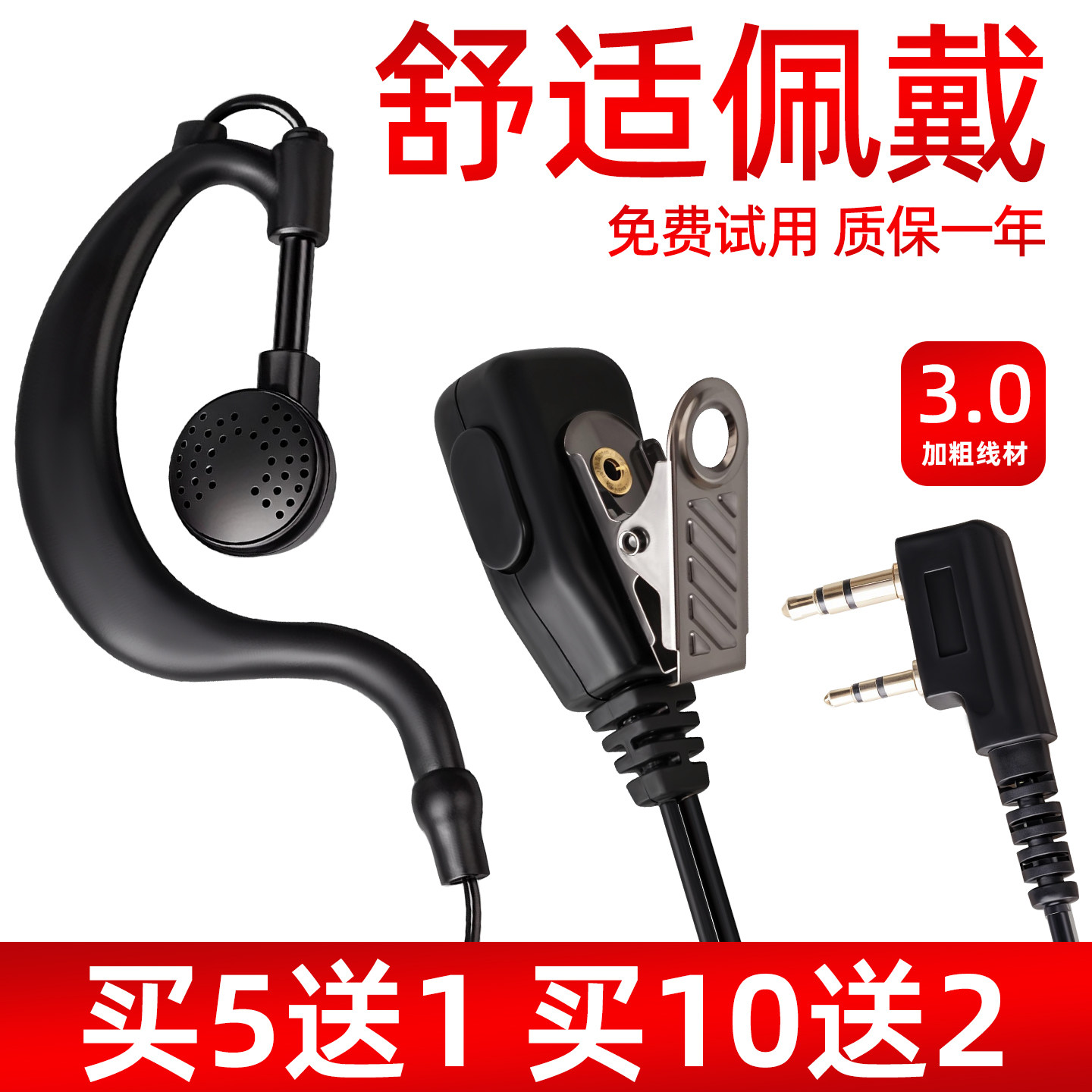 对讲机耳机线耳挂式通用餐饮加粗专用大音量K头适用宝峰摩托罗拉