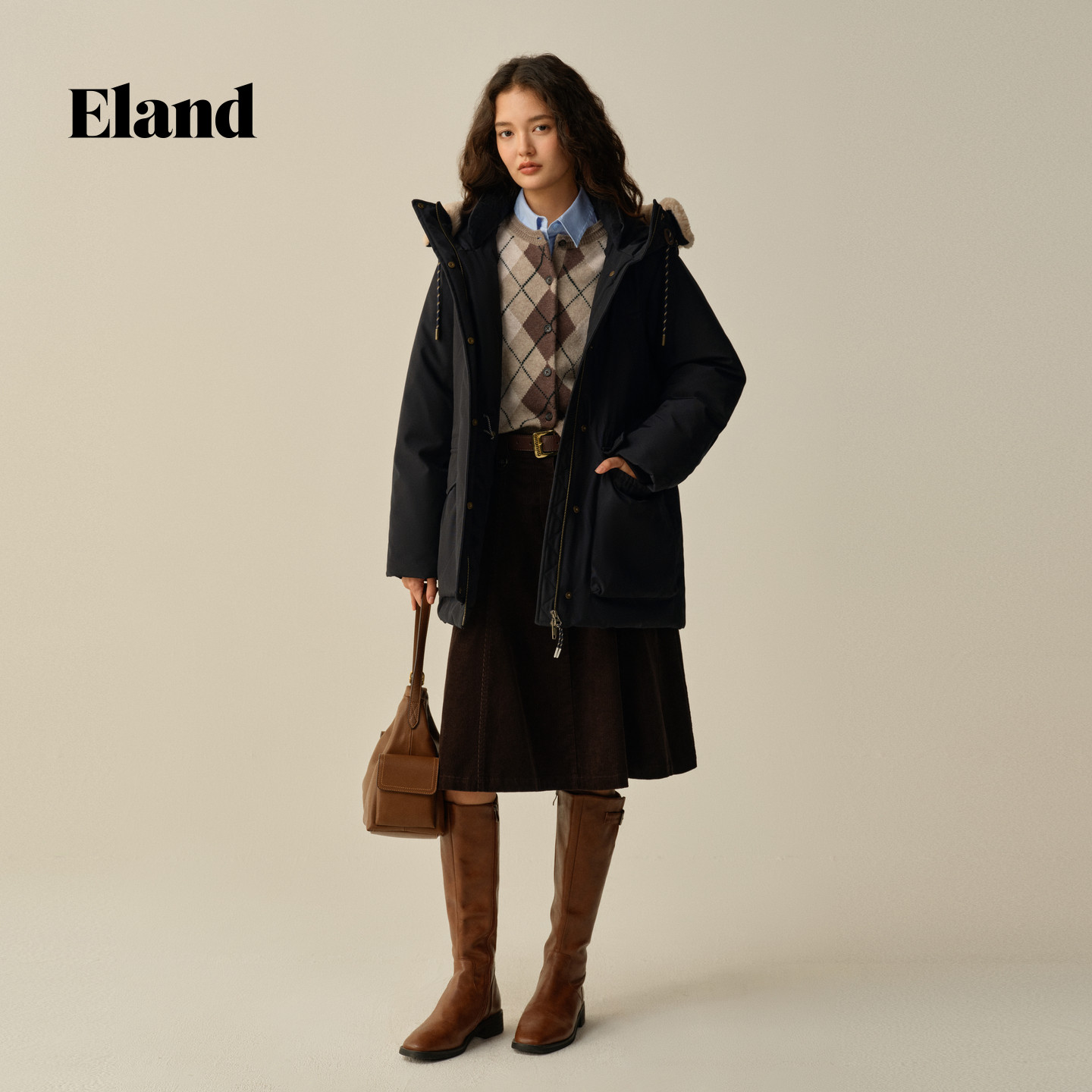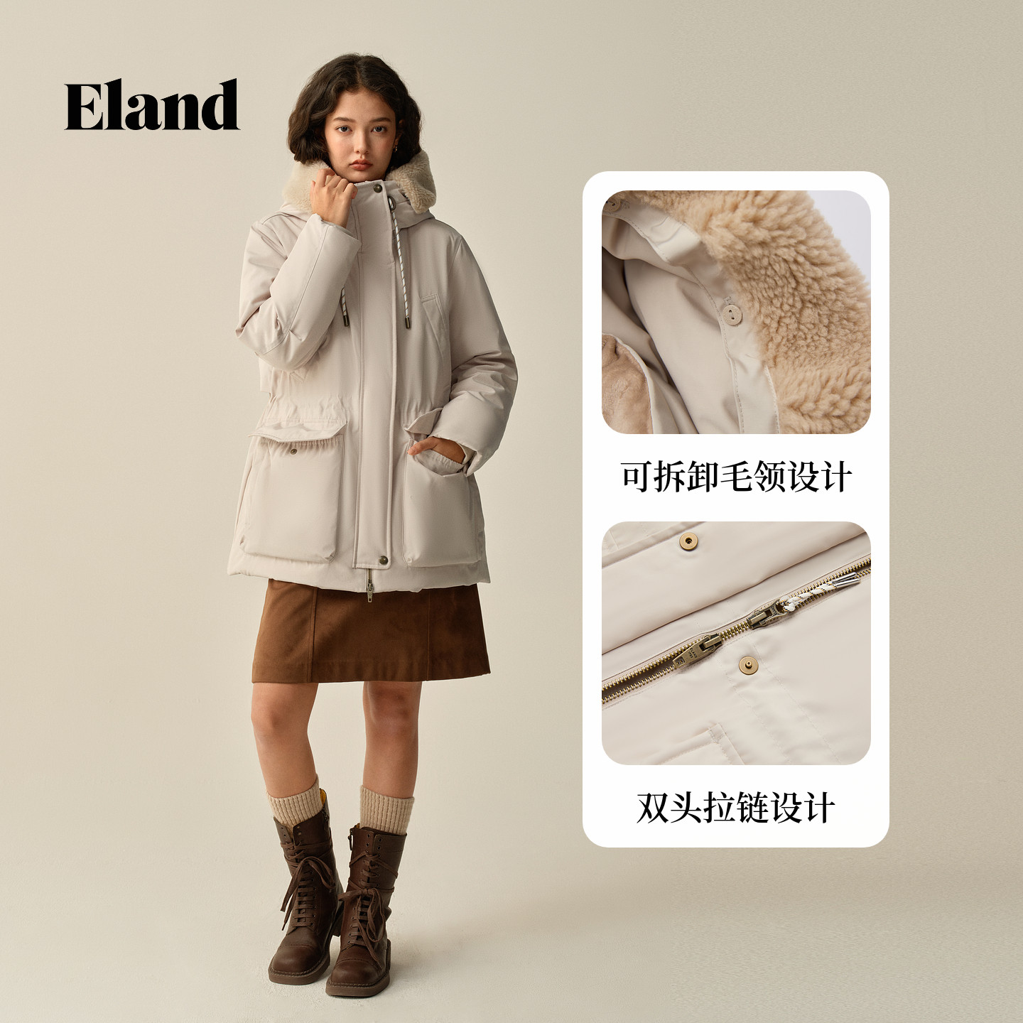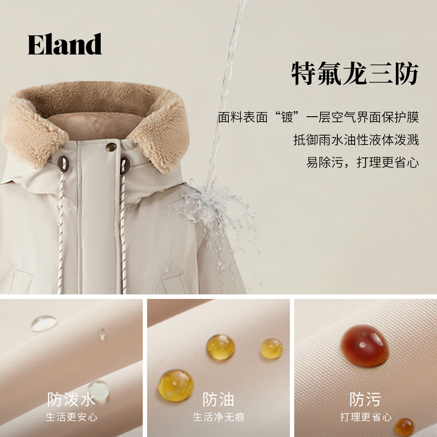 【特氟龙三防&鹅绒】Eland衣恋羽绒服女毛领加厚外套2025冬季新款