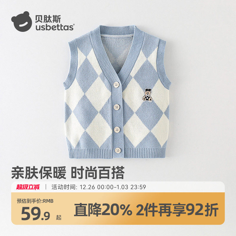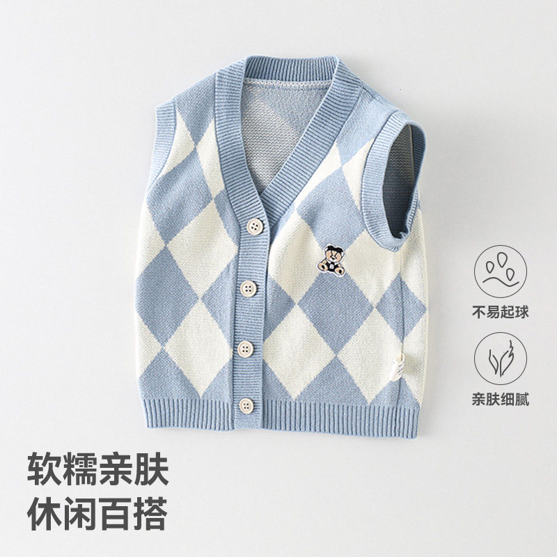 贝肽斯婴儿马甲秋冬外穿宝宝马夹毛衣小背心儿童坎肩儿童衣服S