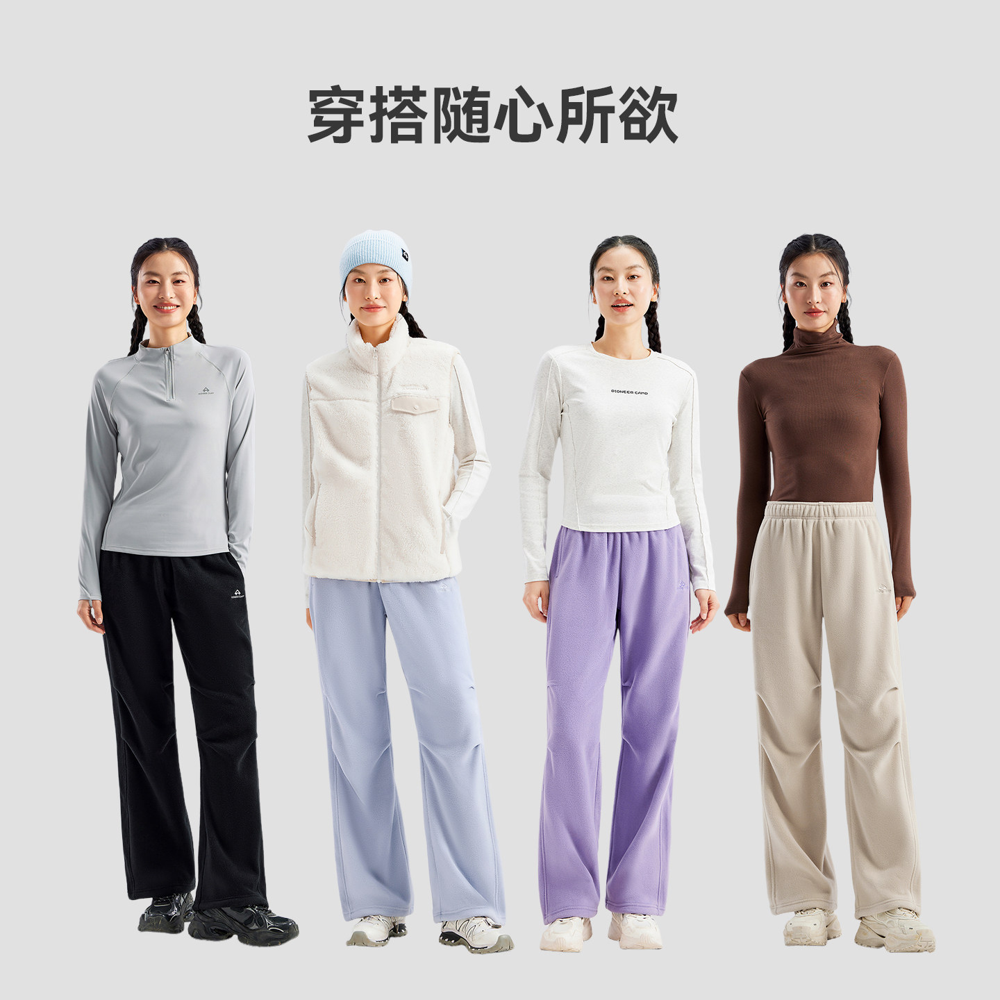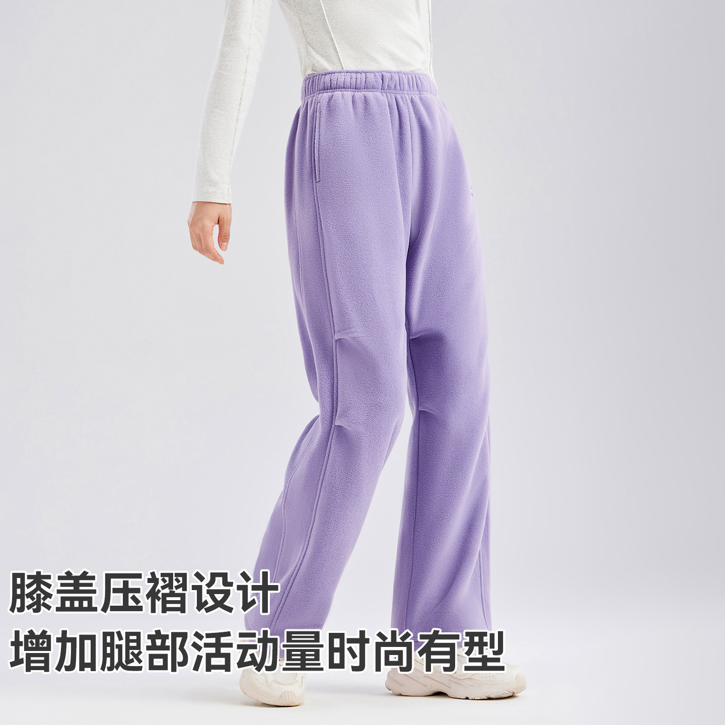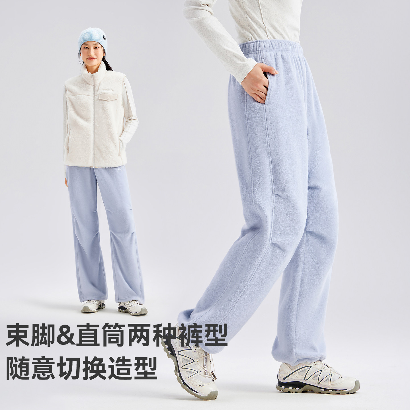 拓路者冬季新款抓绒裤女加绒加厚保暖直筒休闲裤纯色百搭简约卫裤