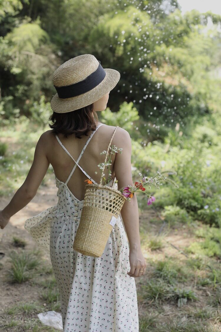 xyt赴一场野餐手工编织草编法式乡村风圆桶花篮拍摄道具度假包