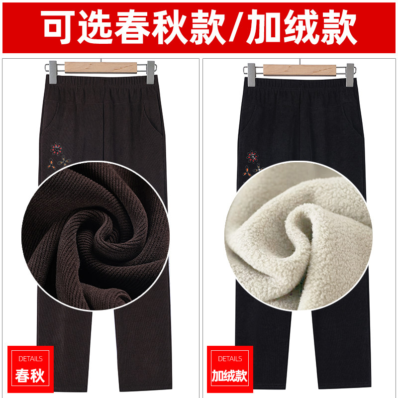 妈妈秋装灯芯绒女裤奶奶冬装加绒厚裤子中老年人条绒直筒长裤洋气