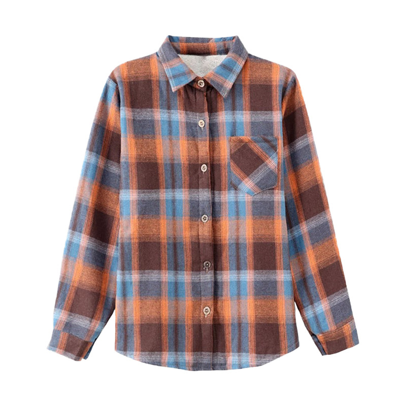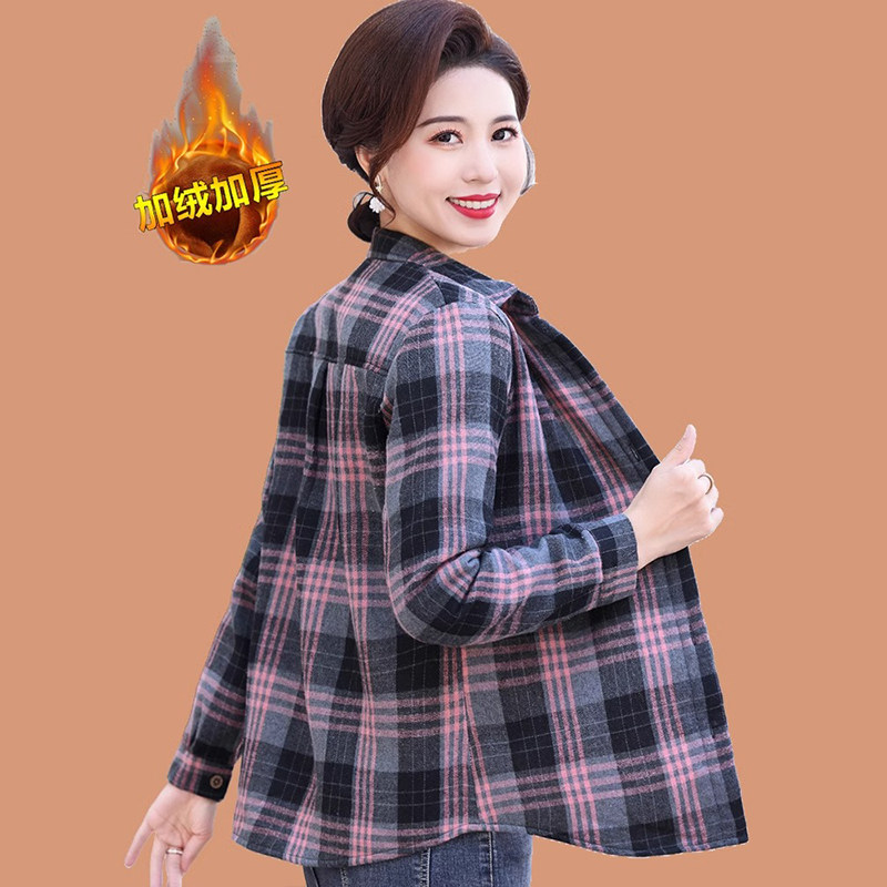 妈妈秋冬装加绒格子衬衫时尚宽松中老年女装长袖保暖衬衣加厚上衣