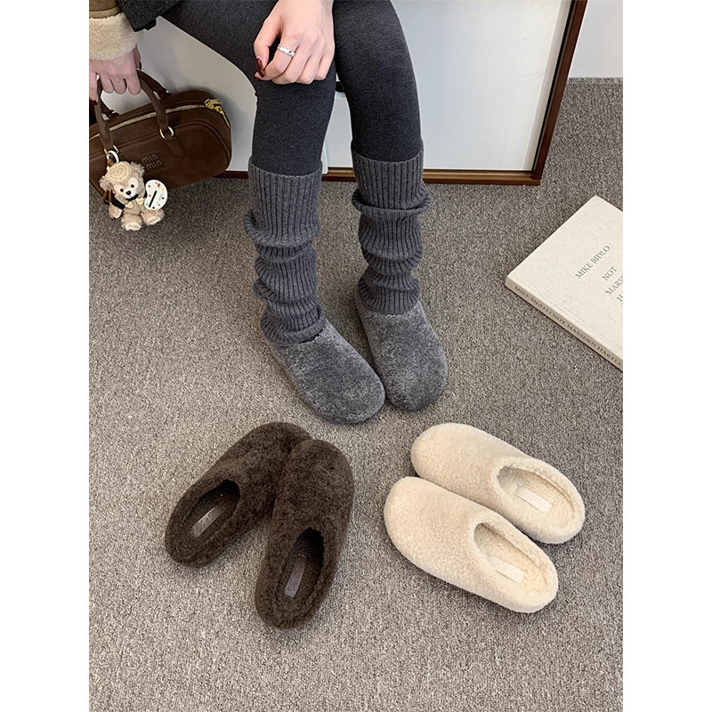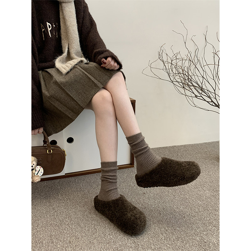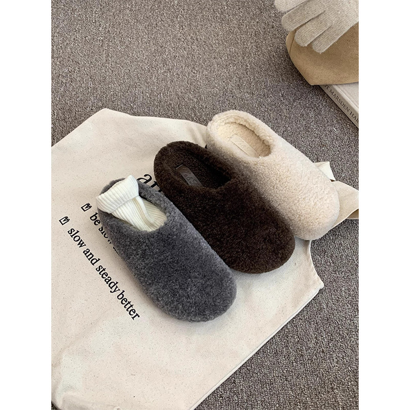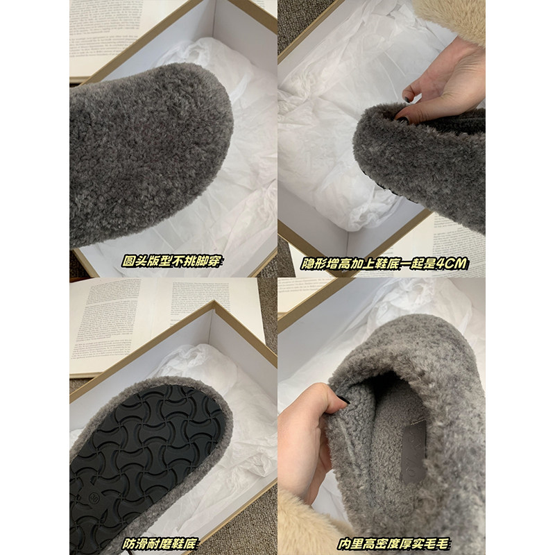 叁叔家~内增高勃肯鞋女加绒秋冬保暖毛毛半拖外穿厚底博肯鞋