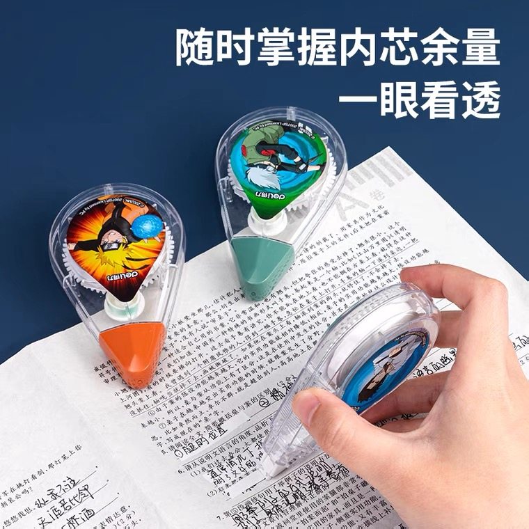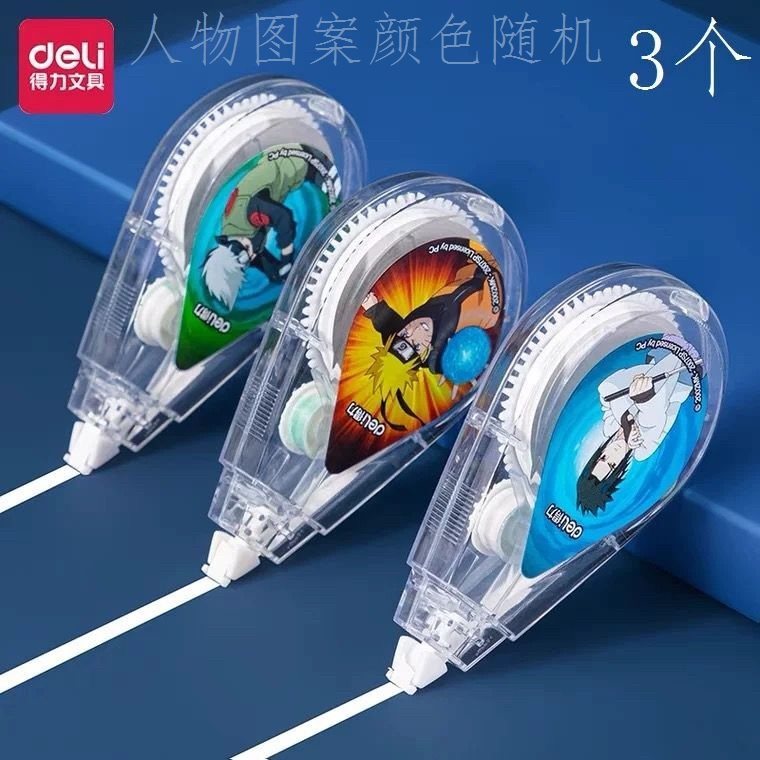 得力修正带30米火影忍者实惠装高颜值男生大容量初中生儿童文具三年级小学生超好用的中性笔卡通改正带涂改带