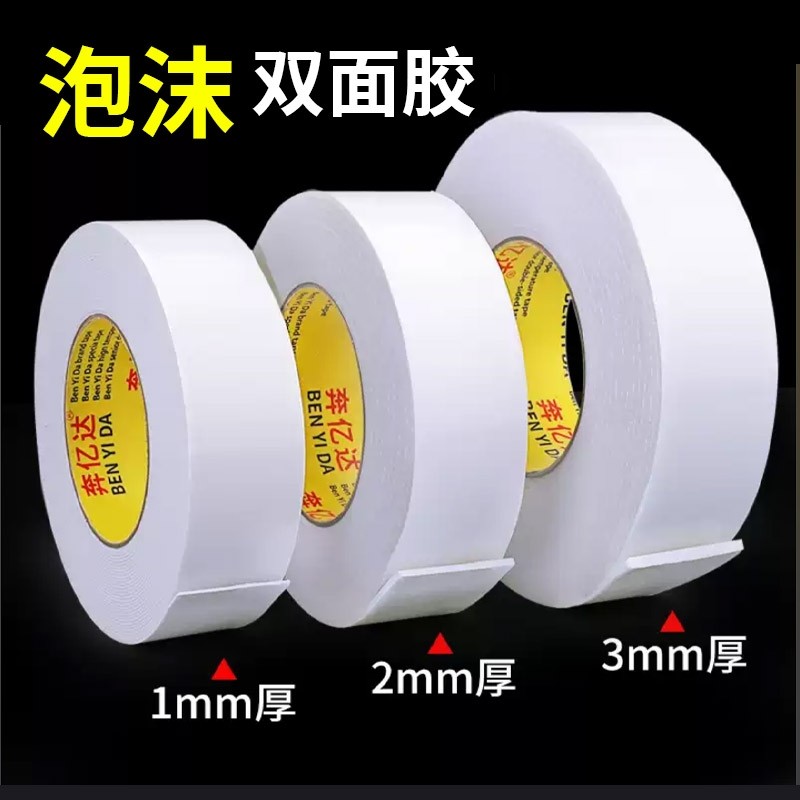 白色泡沫双面胶泡棉高粘度强力海绵加厚胶带宽固定贴墙面相框专用KT板广告牌防水5米10米长两面粘胶双面贴