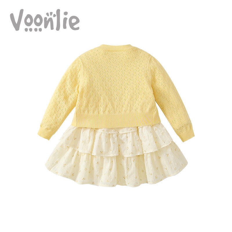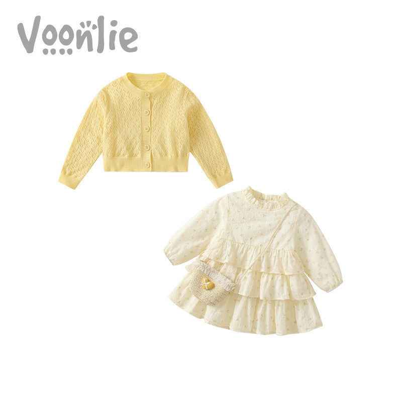 凡猎女童连衣裙春装洋气时髦公主裙开衫碎花套装周岁宝宝礼服春秋