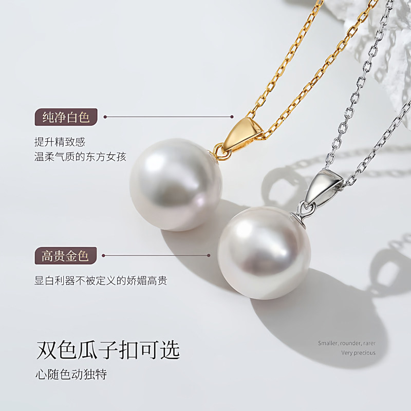 诸暨淡水珍珠吊坠女正圆瓜子扣锁骨链经典气质高级感颈链节日礼物