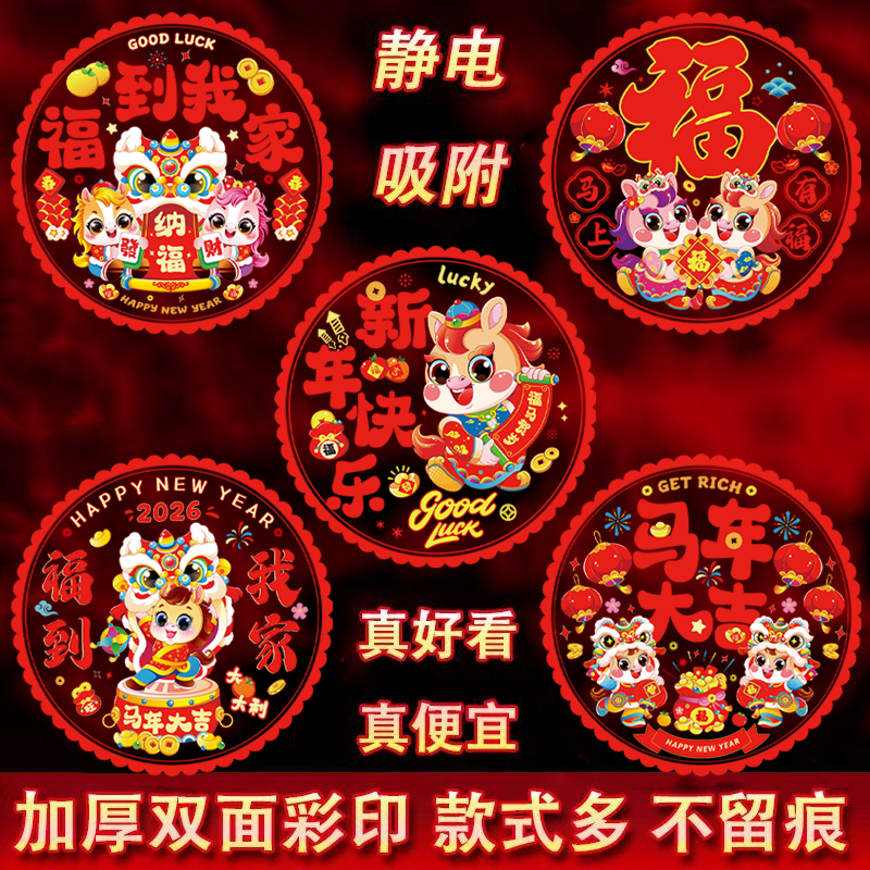 2026新年福字装饰氛围春节静电贴新款窗花贴纸马年窗贴玻璃贴过年