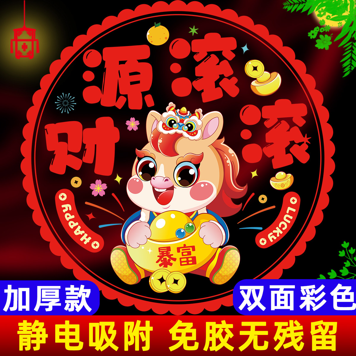 2026新年快乐春节橱窗玻璃贴新年马年装饰用品静电贴过年玻璃贴纸