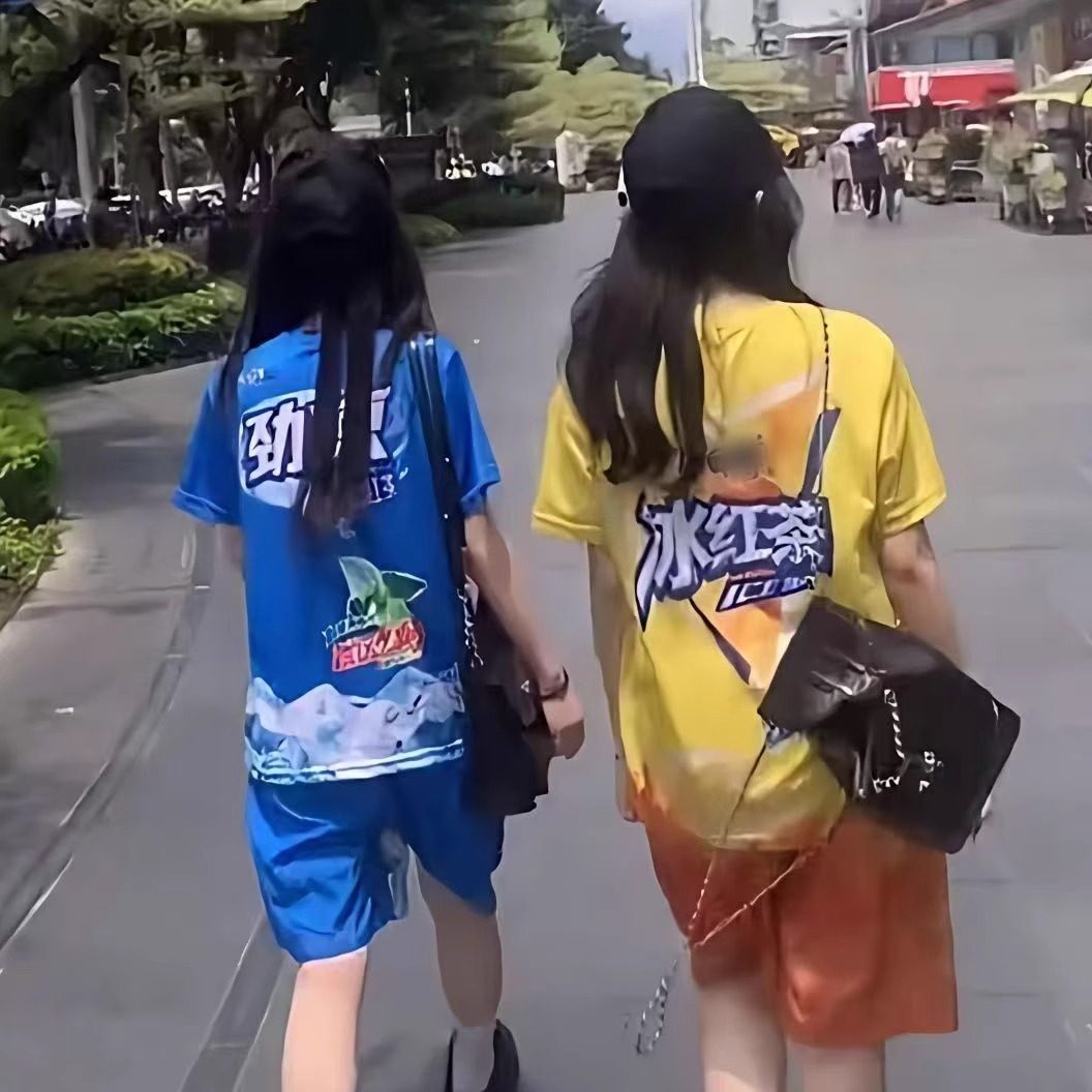 冰红茶衣服睡衣T恤短袖套装尖叫夏季秋劲凉抽象搞怪大胆龙袍儿童