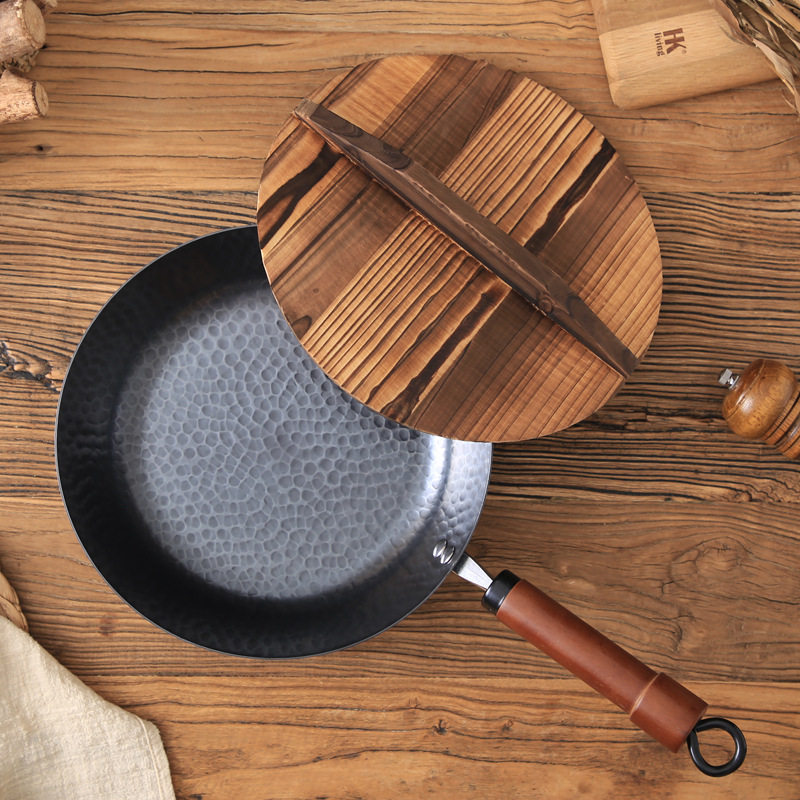 章丘锻打平底煎盘老铁锅牛排不沾煎锅无涂层平底炒锅批发礼品