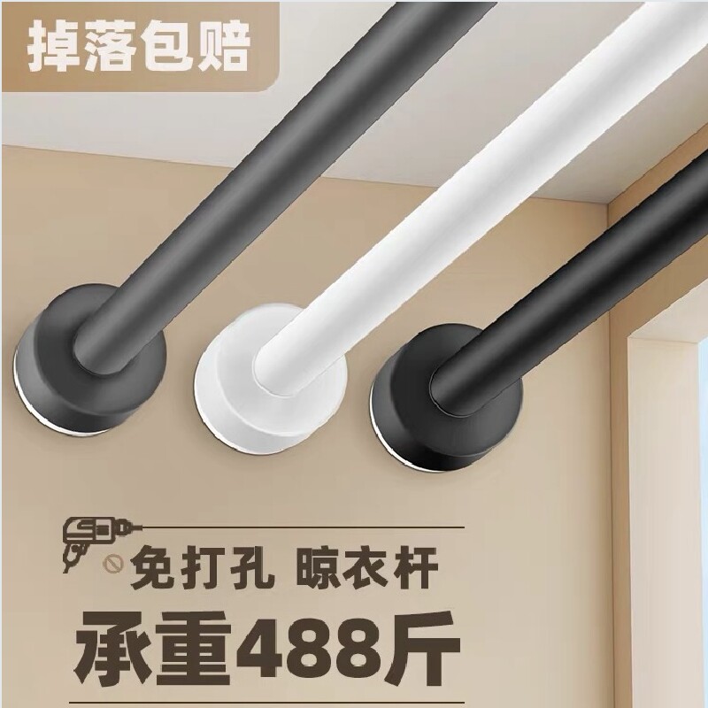 免打孔浴帘杆伸缩阳台墙上固定式晾衣杆撑杆家用挂衣杆窗帘飘窗