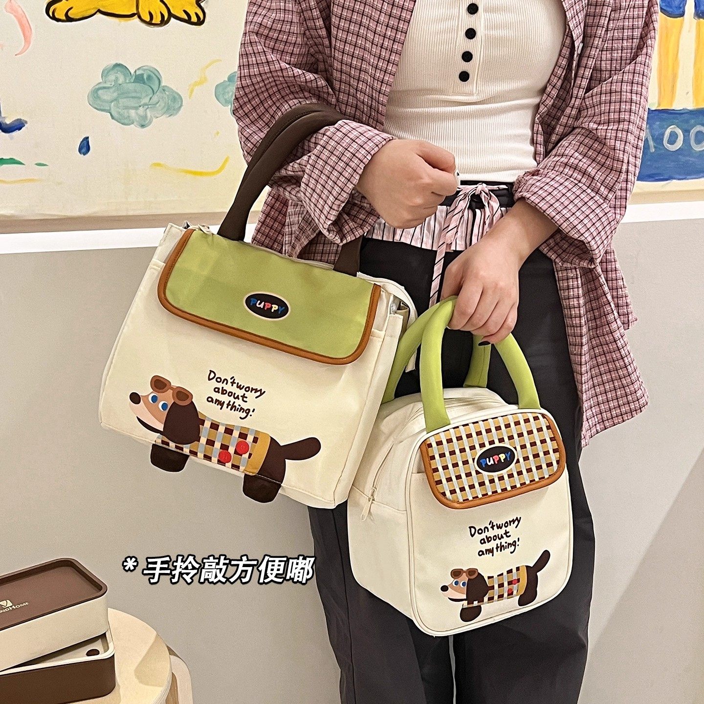 帆布手提包小巧百搭上班族便当包新款学生大容量饭盒袋简约手提袋