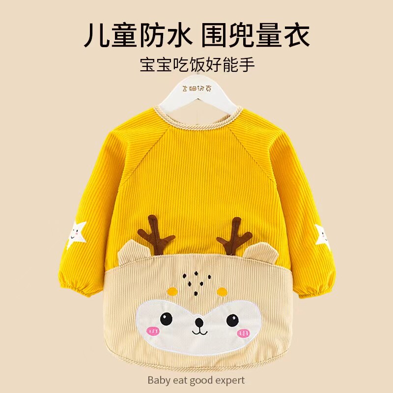 宝宝儿童罩衣防水防脏秋冬季男女小孩围兜吃饭衣外穿洋气婴儿围裙