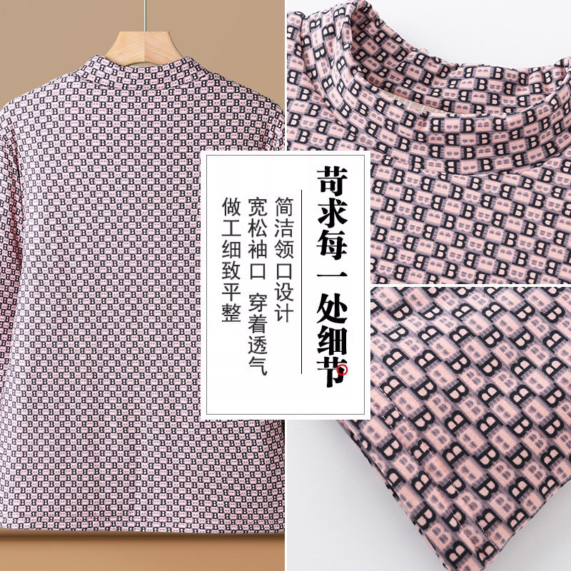 妈妈长袖打底衫秋冬季德绒保暖上衣女中老年大码宽松加厚圆领秋衣