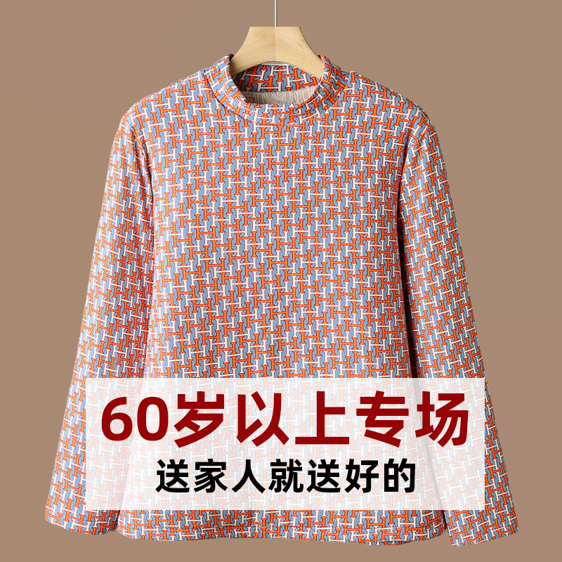 奶奶冬装中老年人女打底衫加绒保暖绒衫妈妈上衣老太太衣服半高领