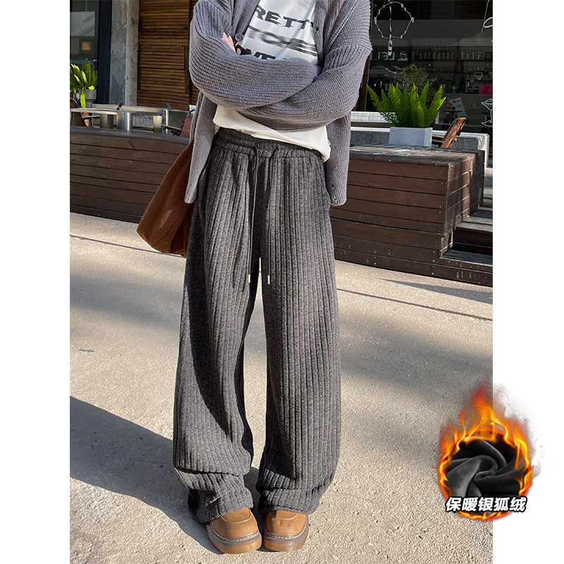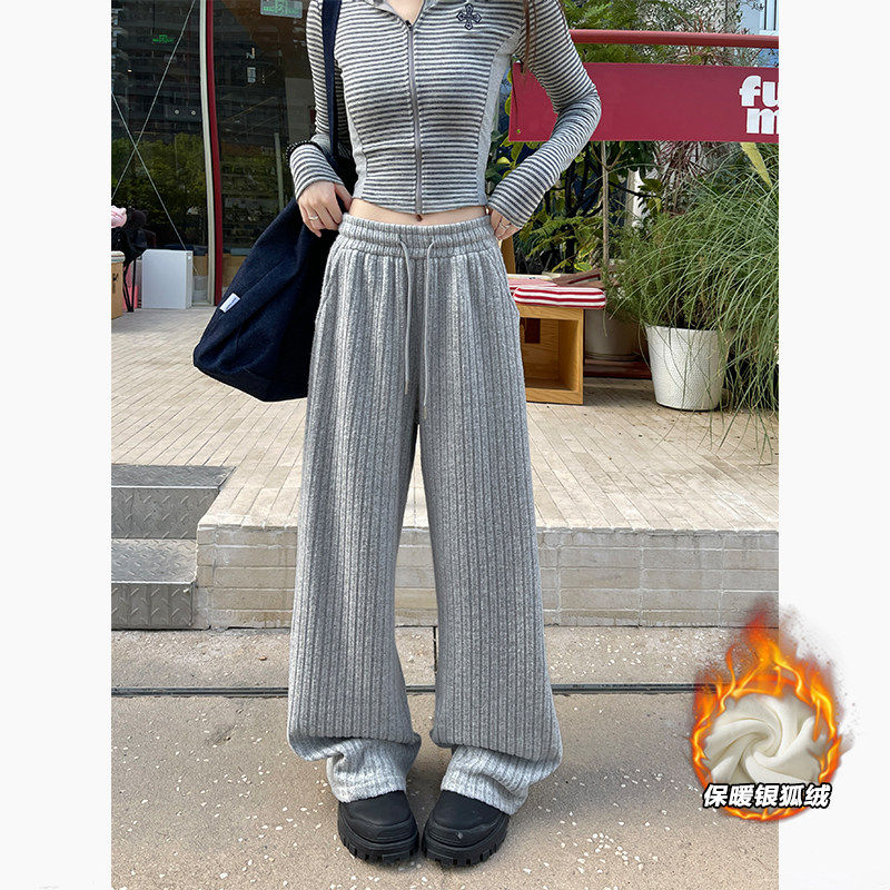 美式重磅加绒卫裤男秋冬新款潮牌宽松百搭肌理抓绒直筒运动休闲裤