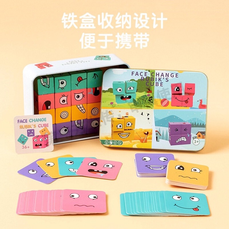 磁力方块拼图早教益智动物积木卡通六面画立体霸王龙拼图玩具塑胶